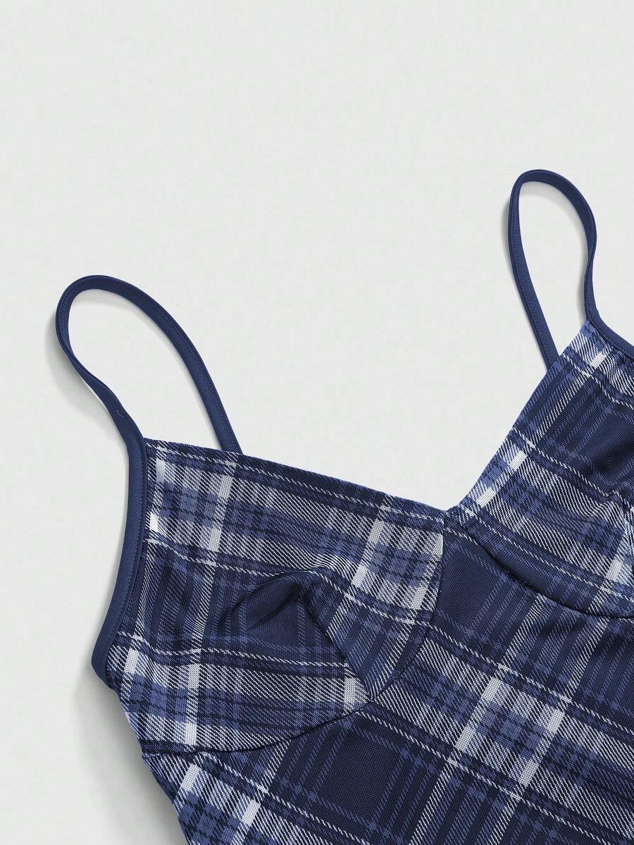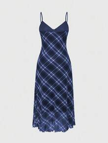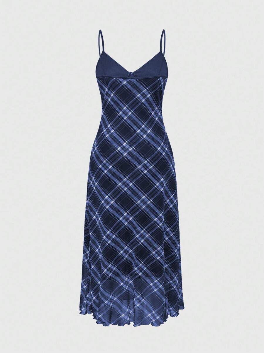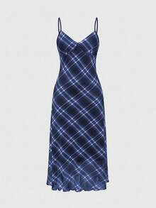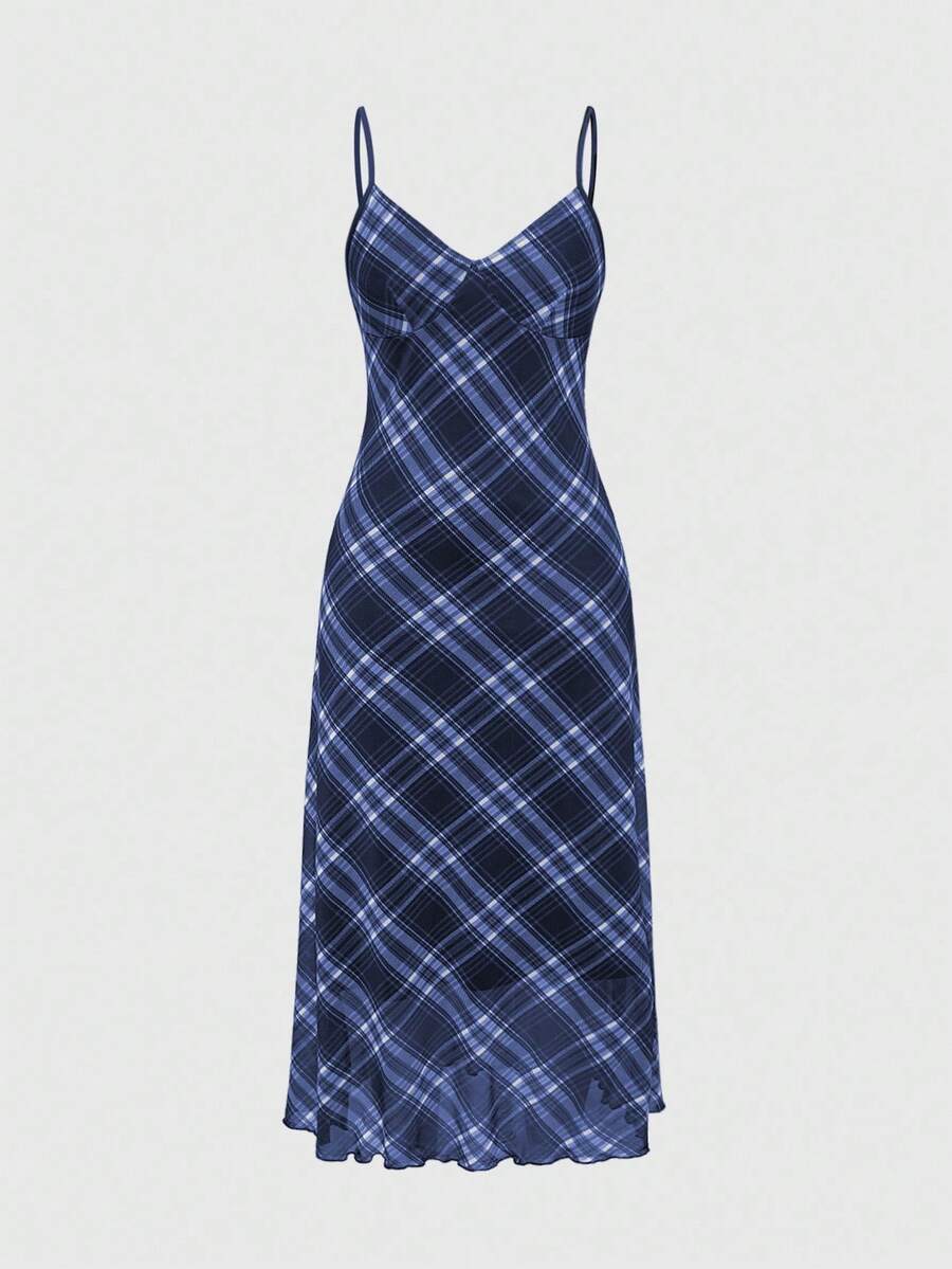 Fairycore Women's Plaid Print Casual Maxi Cami Dress