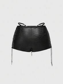 ROMWE Avant Women's Retro Gyaru Biker PU Decorated Low Waist Mini Tight Shorts