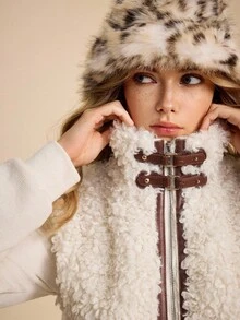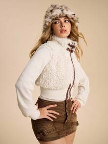 Hippie Women's Retro Hippie Western Cowgirl Colorblock Faux Fur Decor Button Regular Jacket