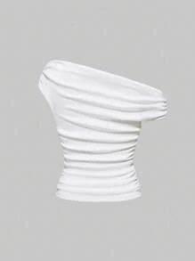 Grunge Punk Women's Sexy Asymmetrical Shoulder Leopard Print Skeleton Applique Bodycon T-Shirt