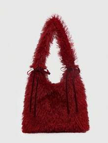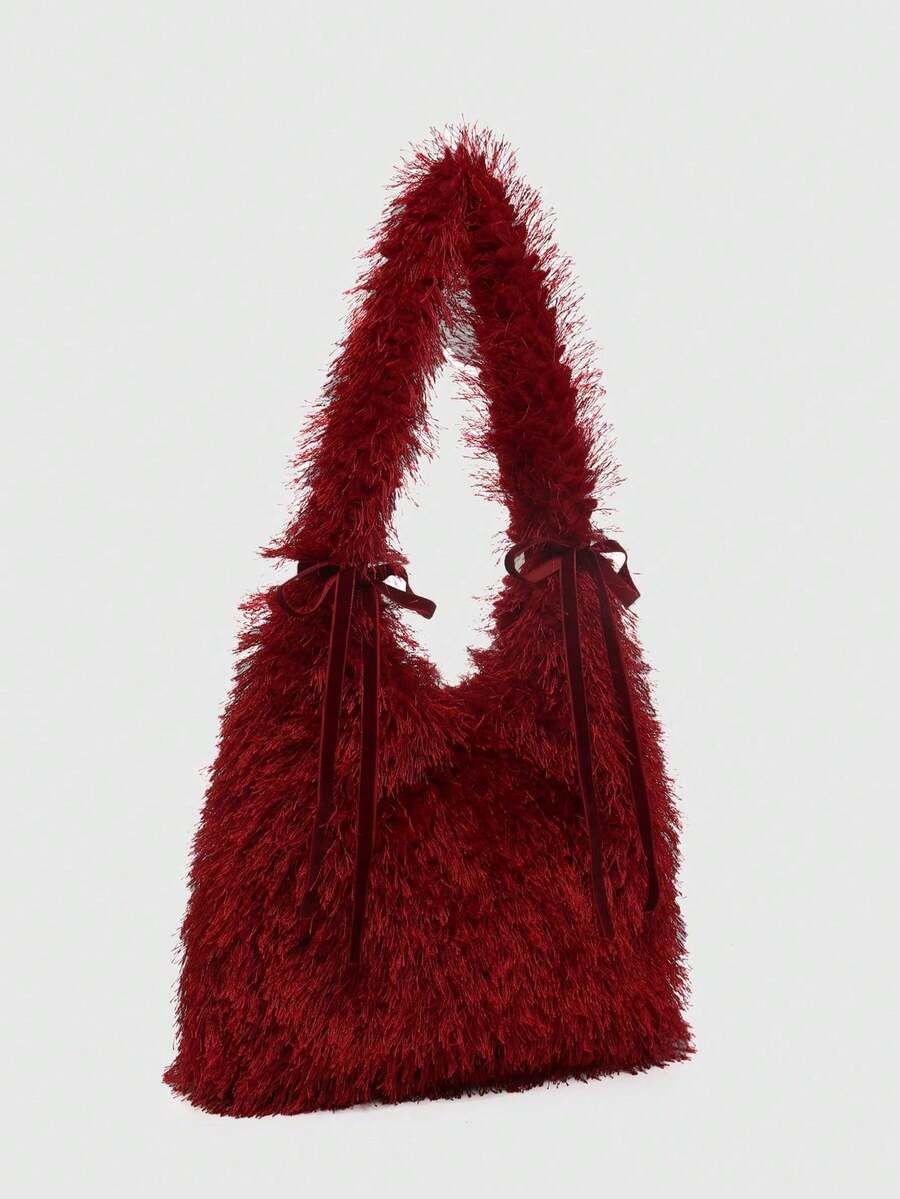 Kawaii Women's Vintage Style Vacation Netted Ruffle Bow Decor Large Capacity Tote Bag