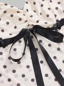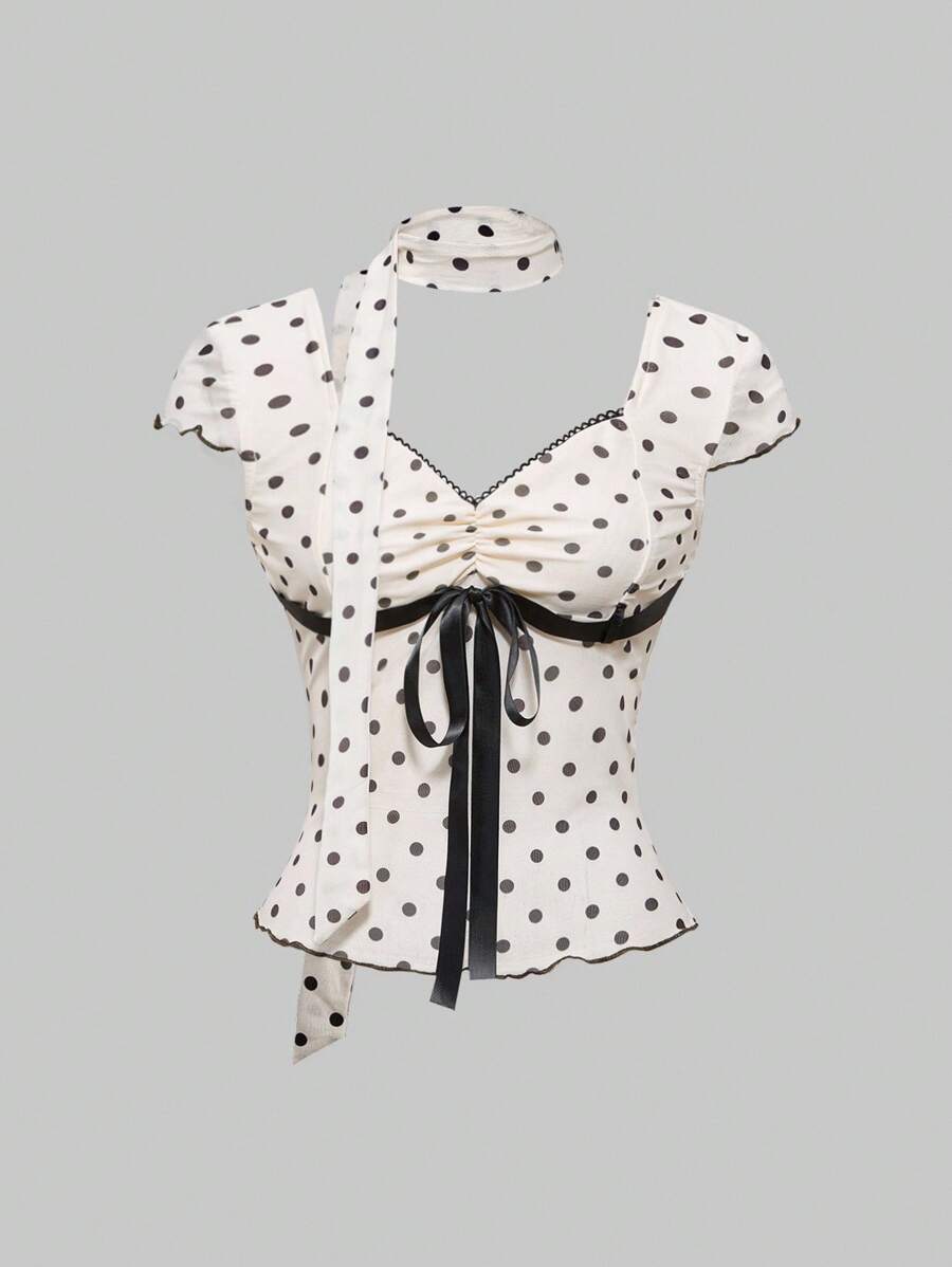 J-Fashion Women's Y2K Chest Ruched Cute Polka Dot Print Scarf T-Shirt