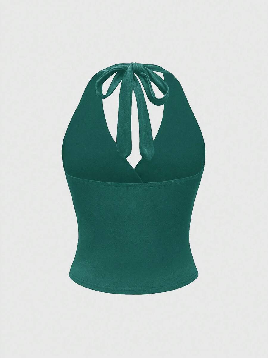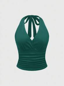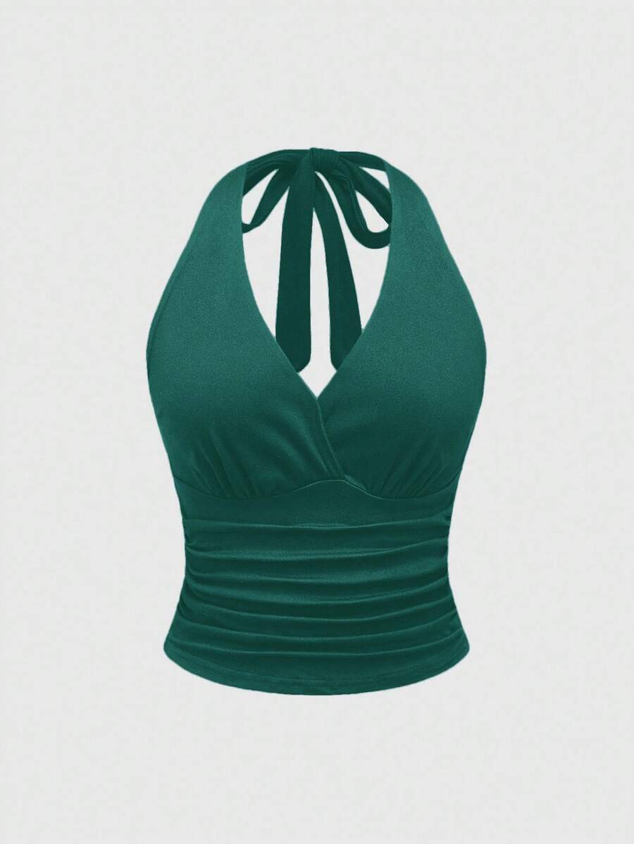 Grunge Punk Women's Y2K Solid Color Pleated Fitted Sexy Halter Neck Camisole