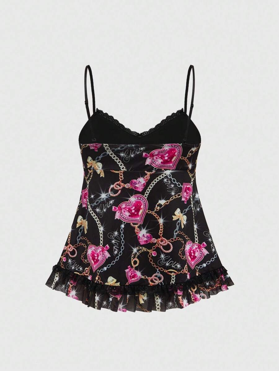 J-Fashion Women's Y2K Style Gold Chain Strap Camisole Top With Heart & Bow Design