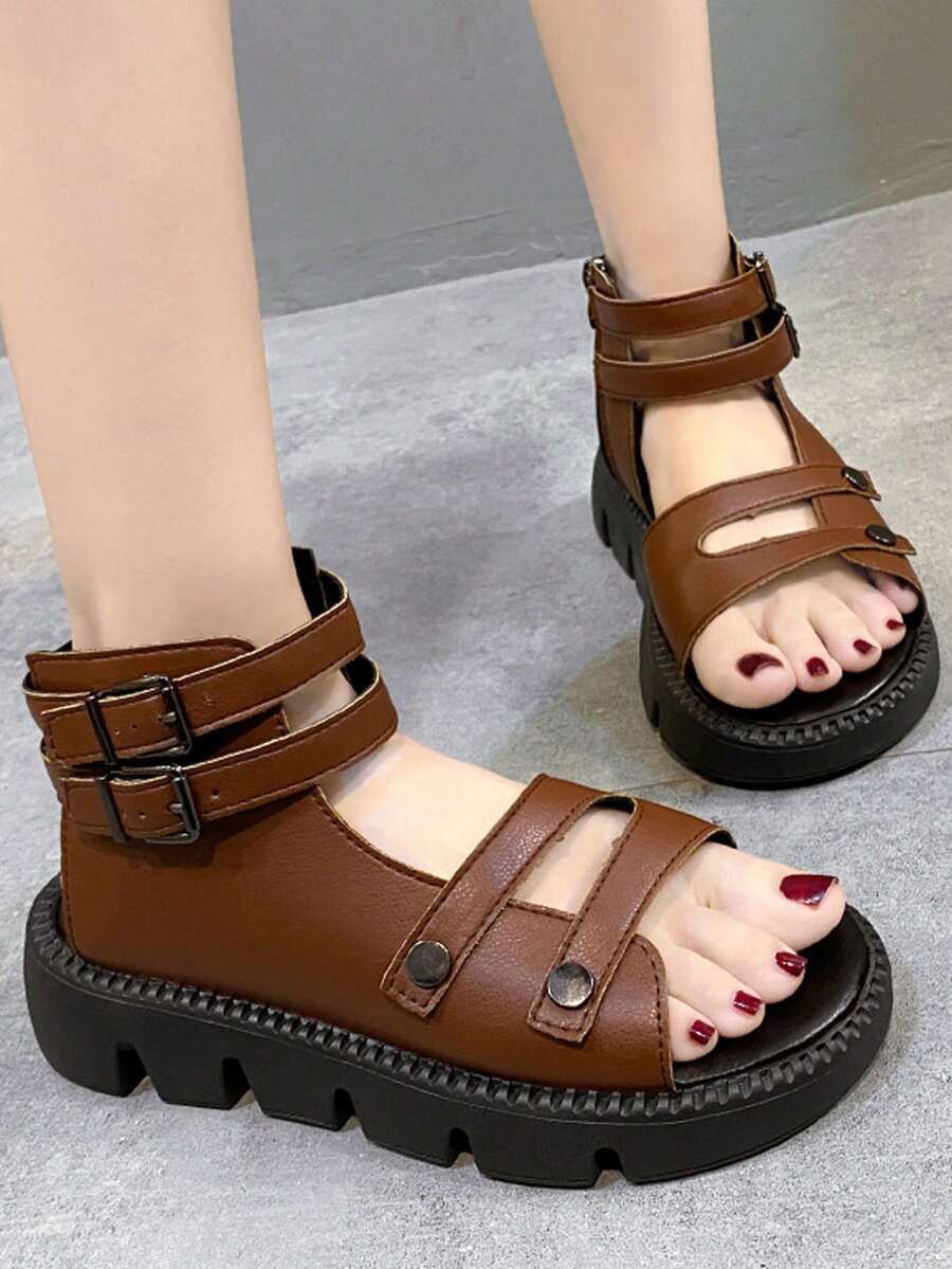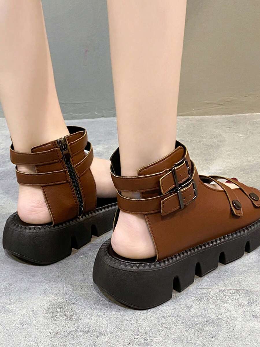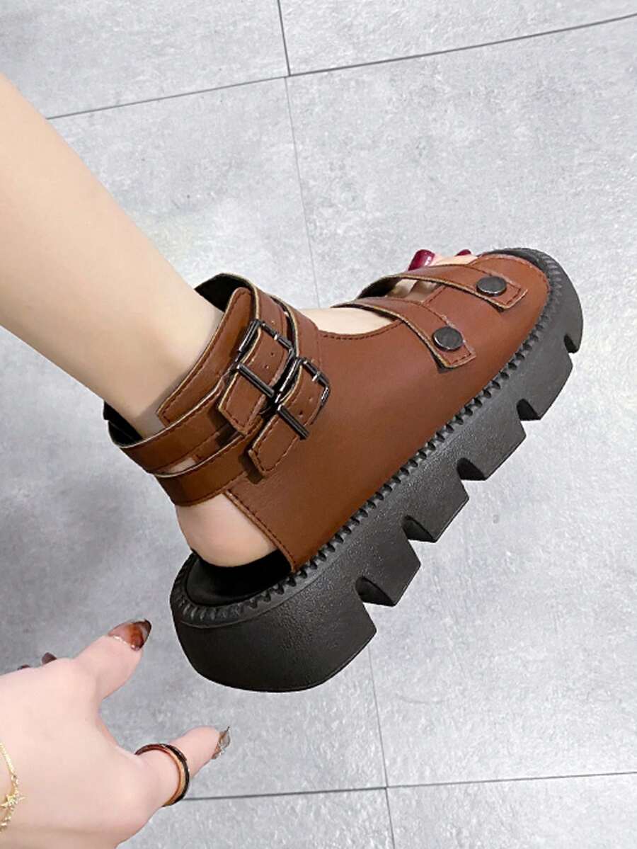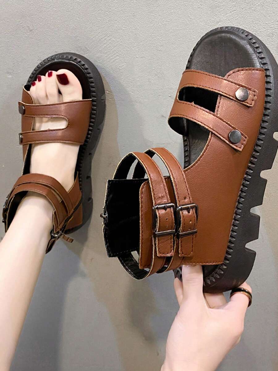 Women Buckle Decor Flatform Sandals, Punk Outdoor Sandals