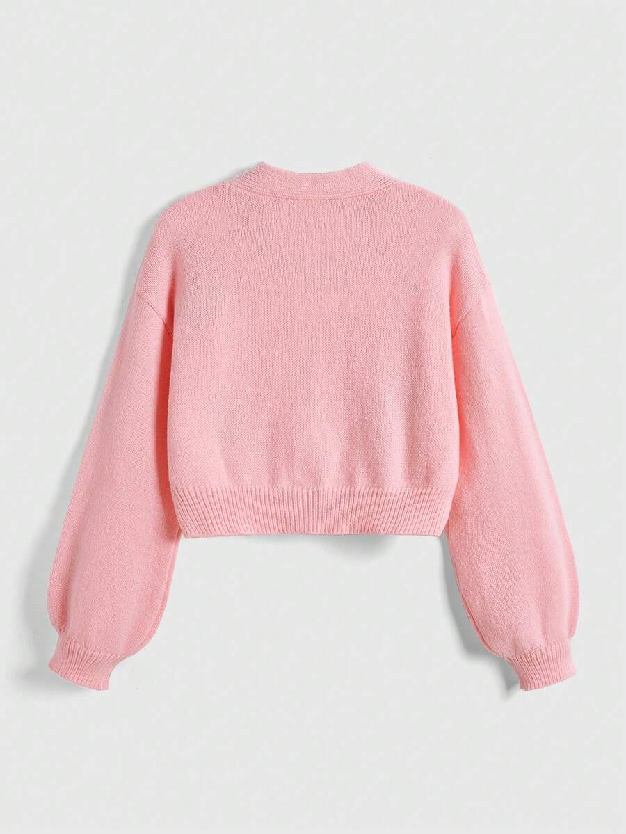 Women Casual Cartoon Embroidered Dropped Shoulder Loose Cropped Button Lightweight Cardigan