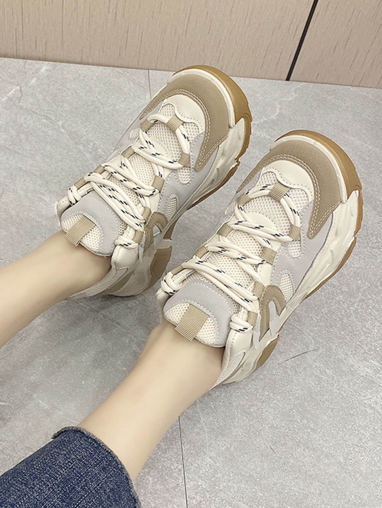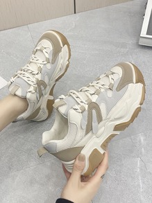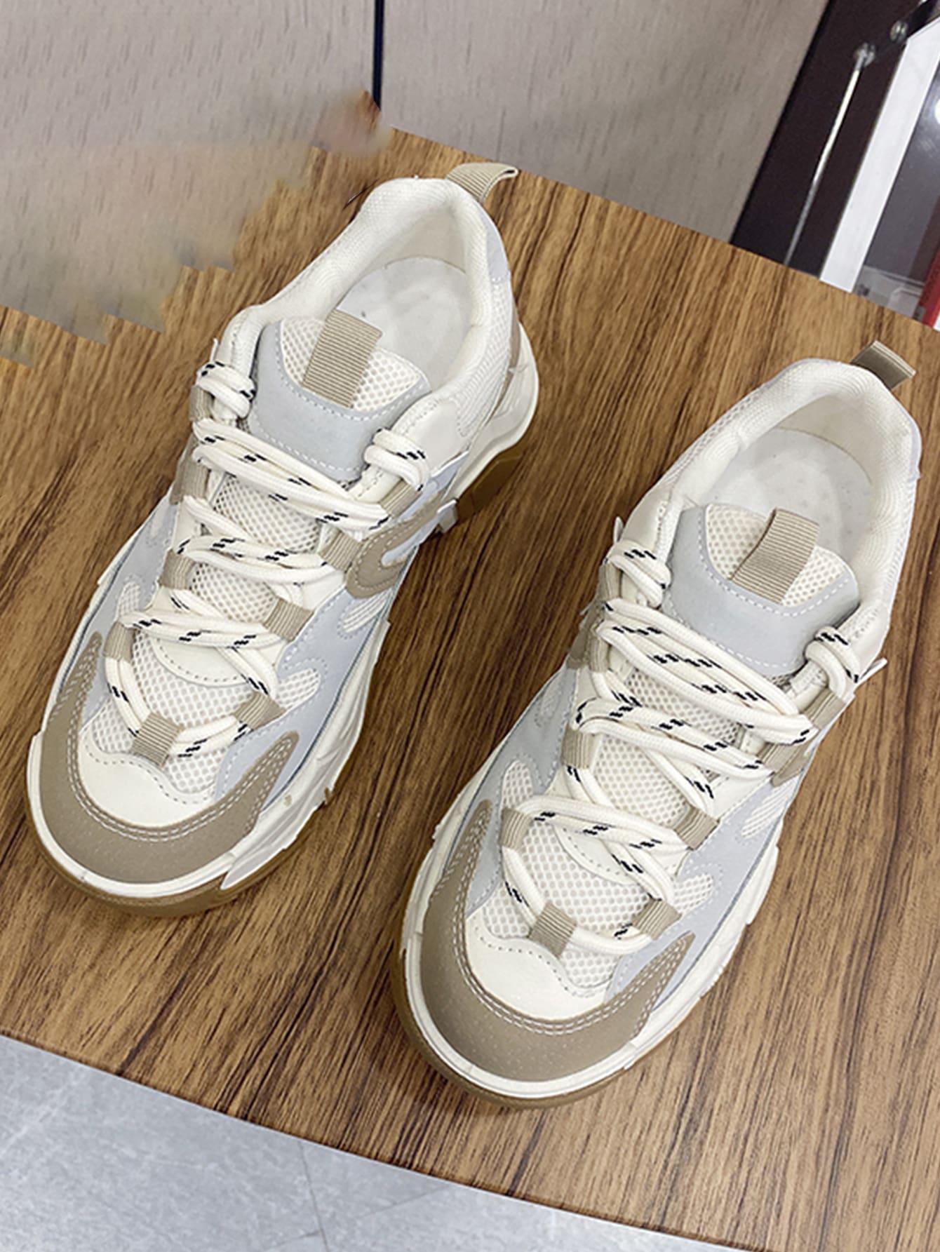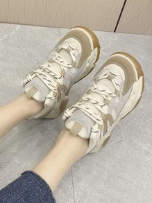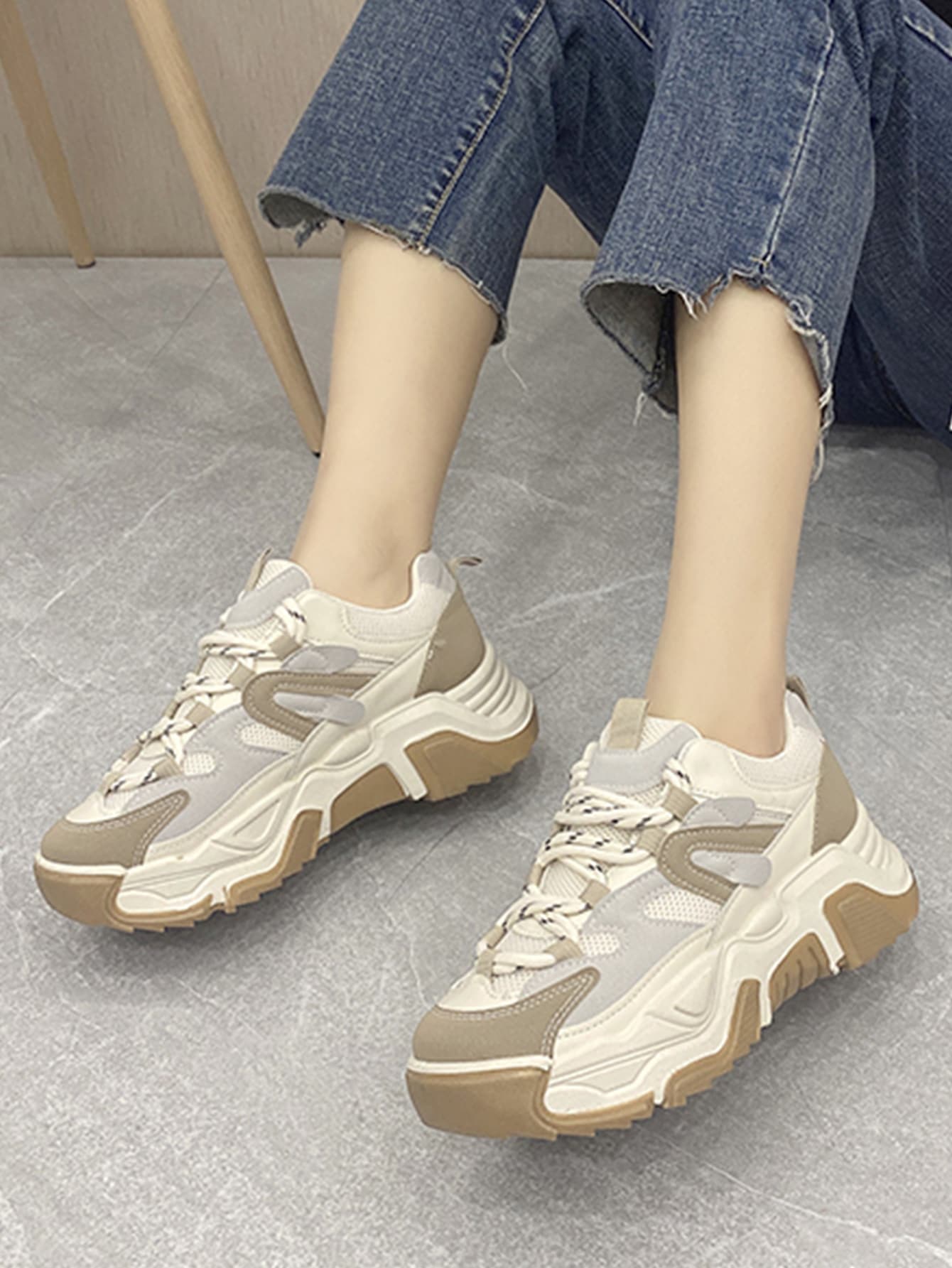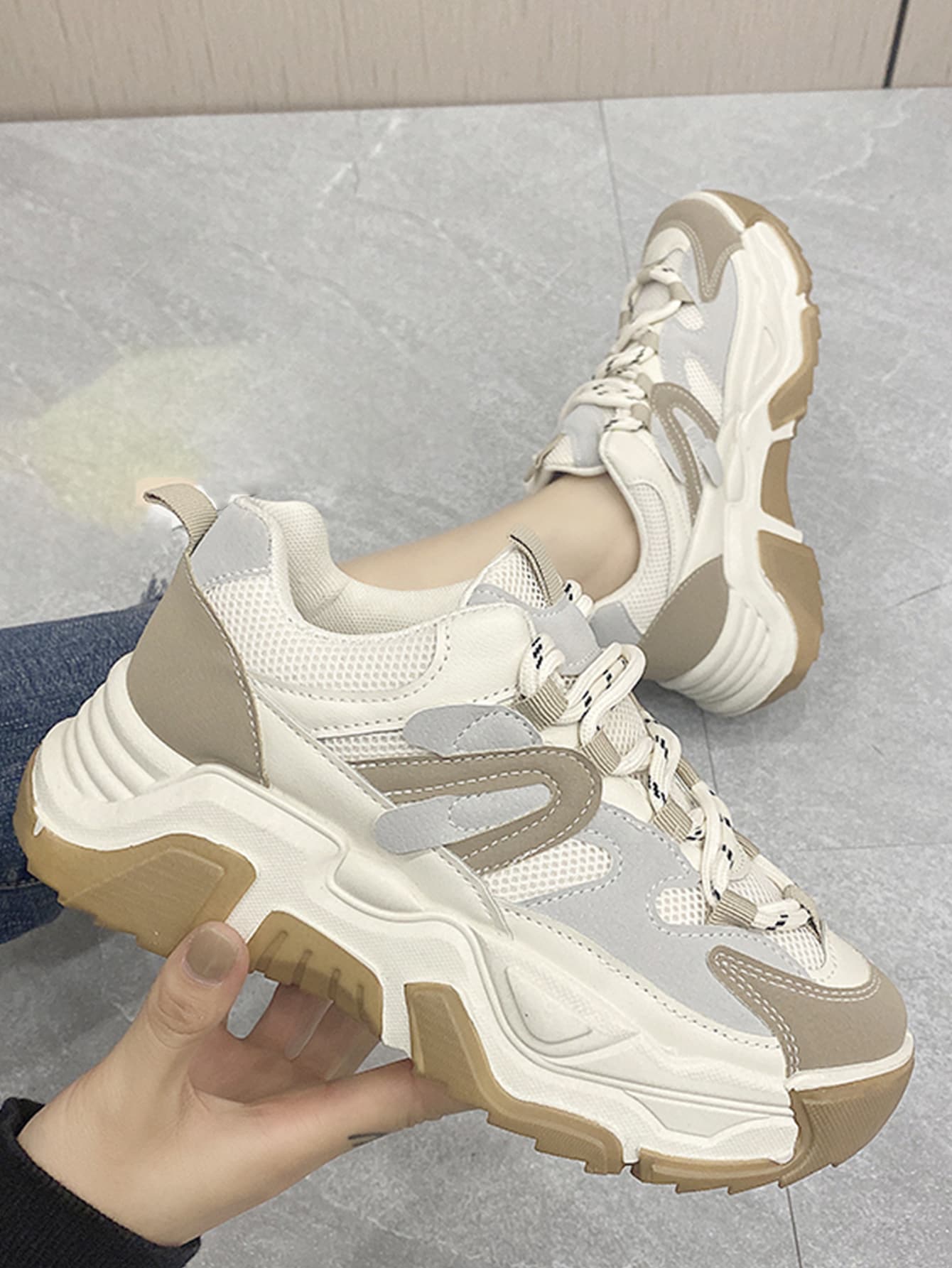 Women Color Block Lace-up Front Sneakers Fashion Outdoor Chunky Shoes