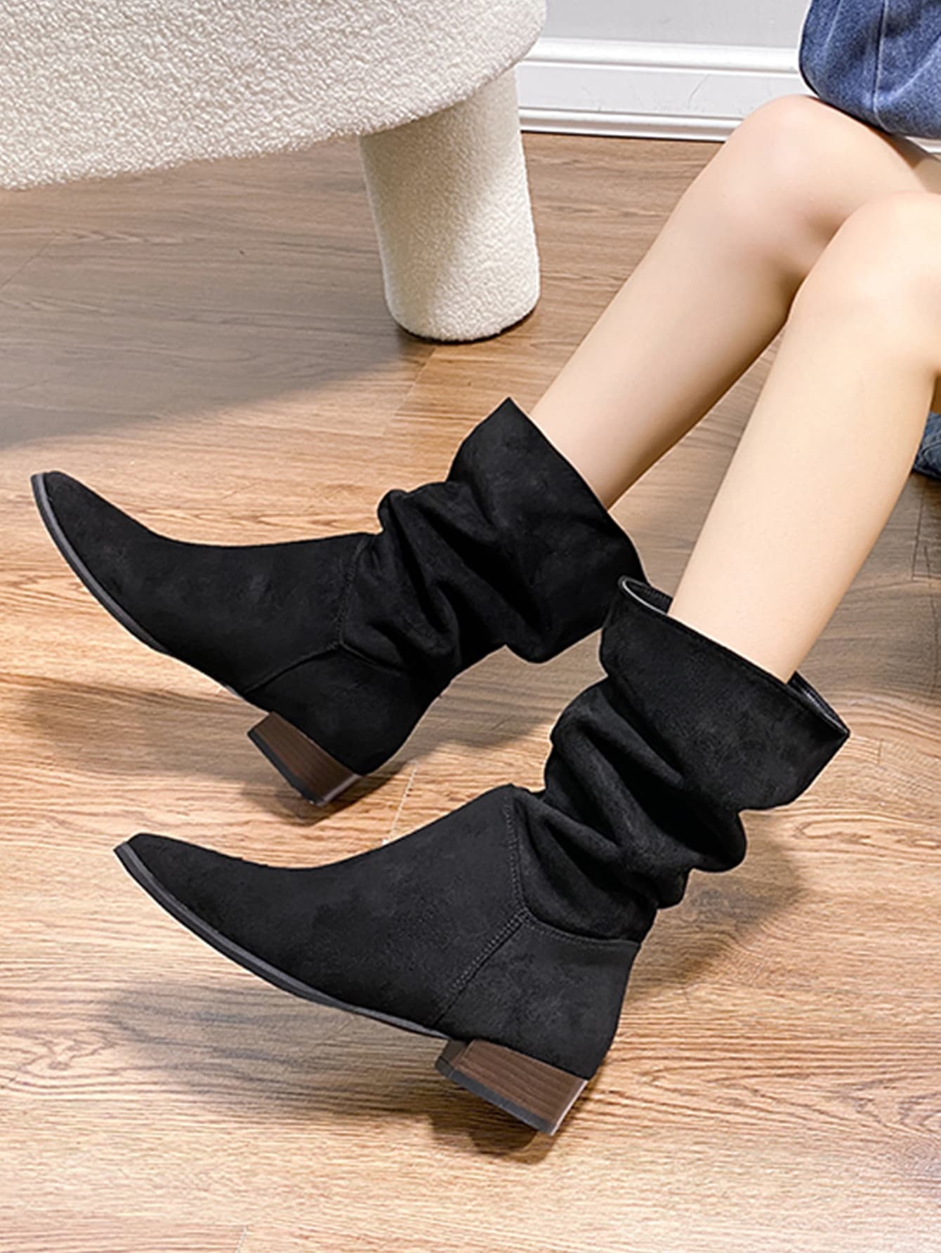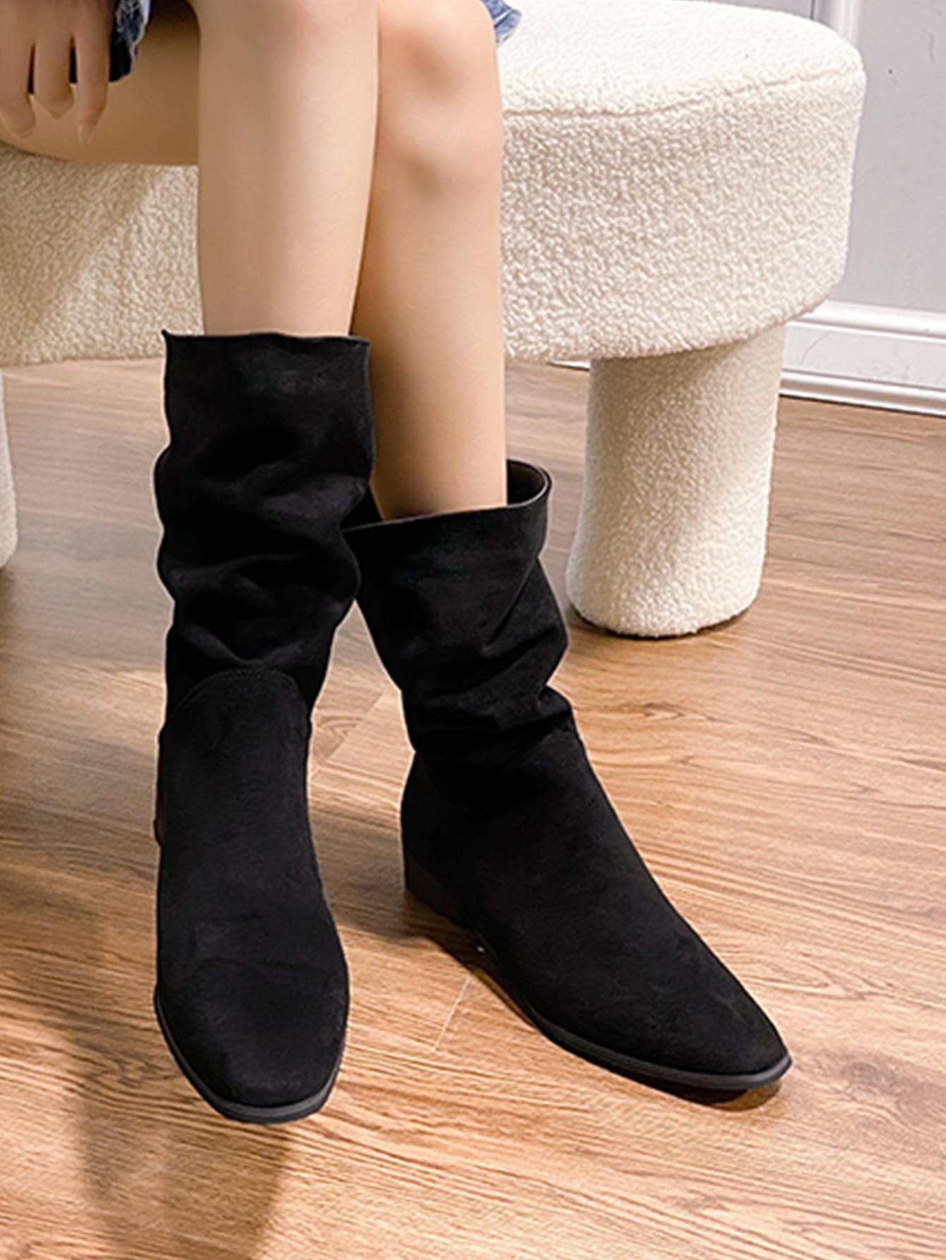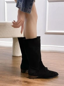 Slip On Faux Suede Slouchy Boots