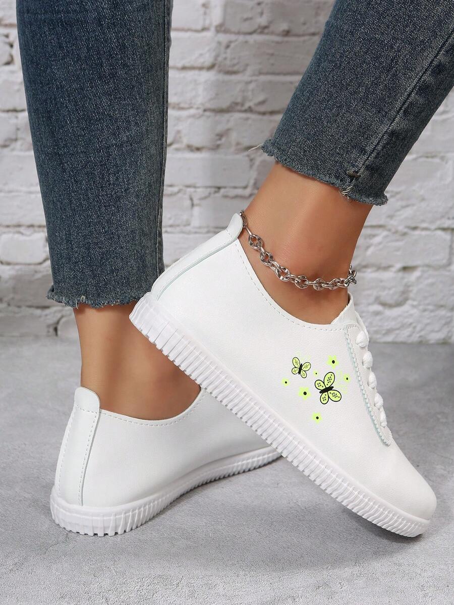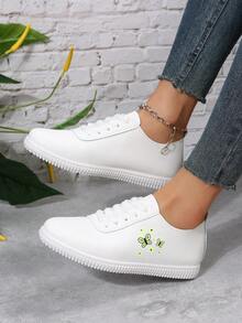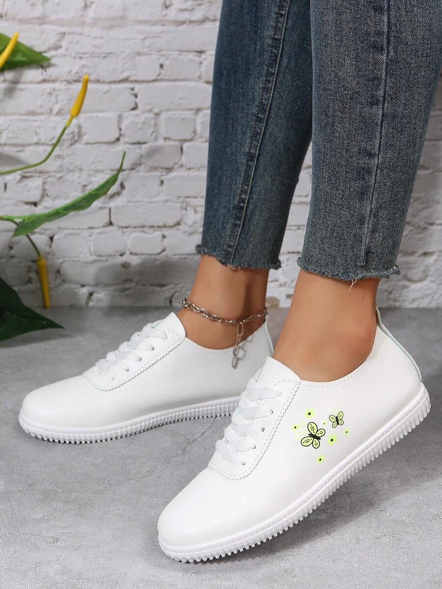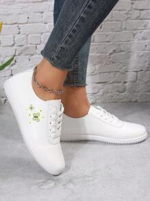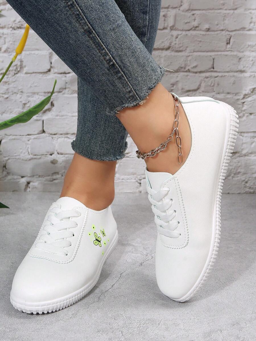 Women Floral Embroidered Lace-up Front Skate Shoes