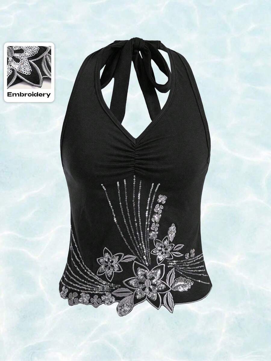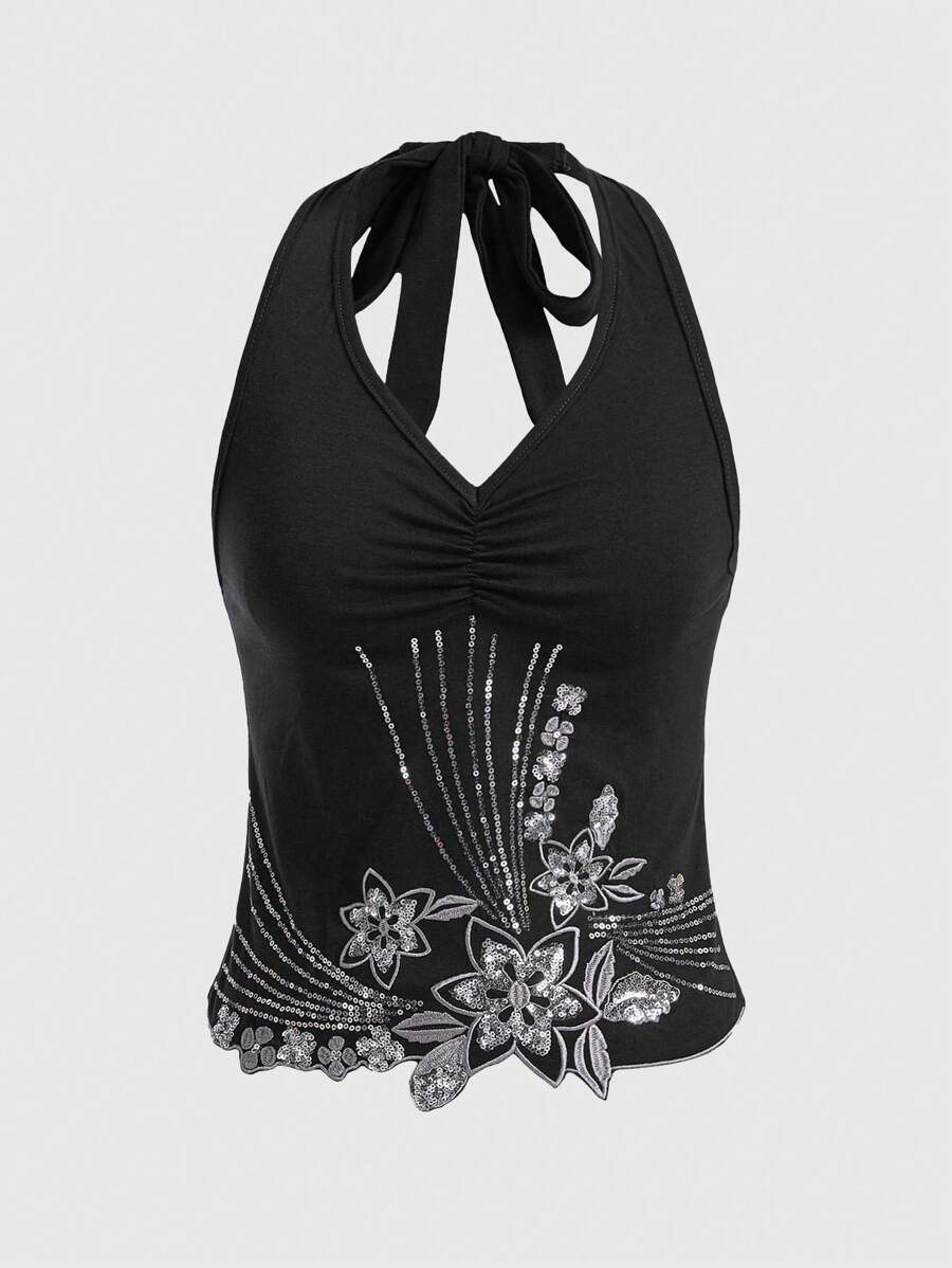 Hippie Women Floral Sequin Splice Halter Top Summer
