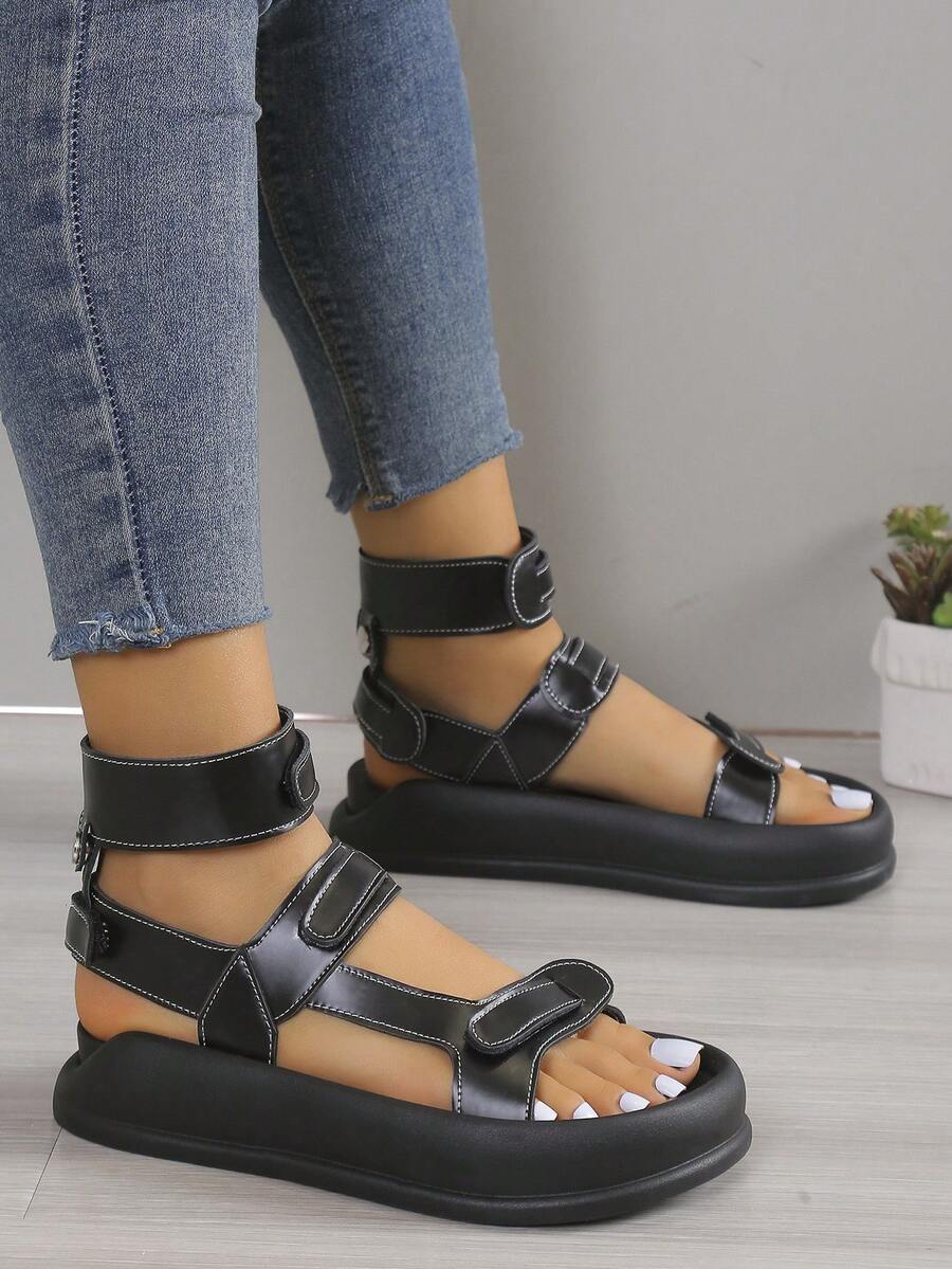 Women Hook-and-loop Fastener Ankle Strap Flatform Sandals, Cool Outdoor Sandals