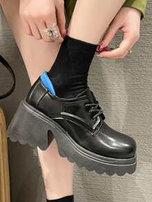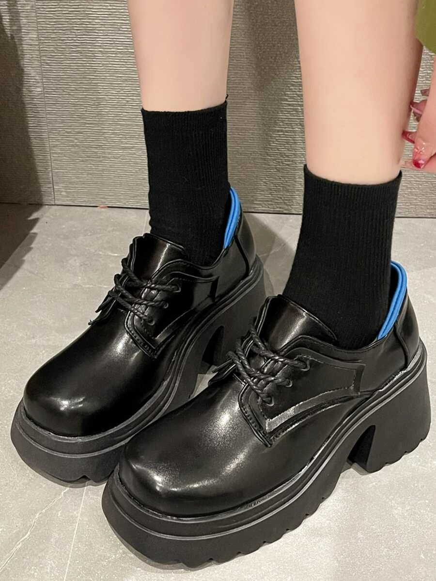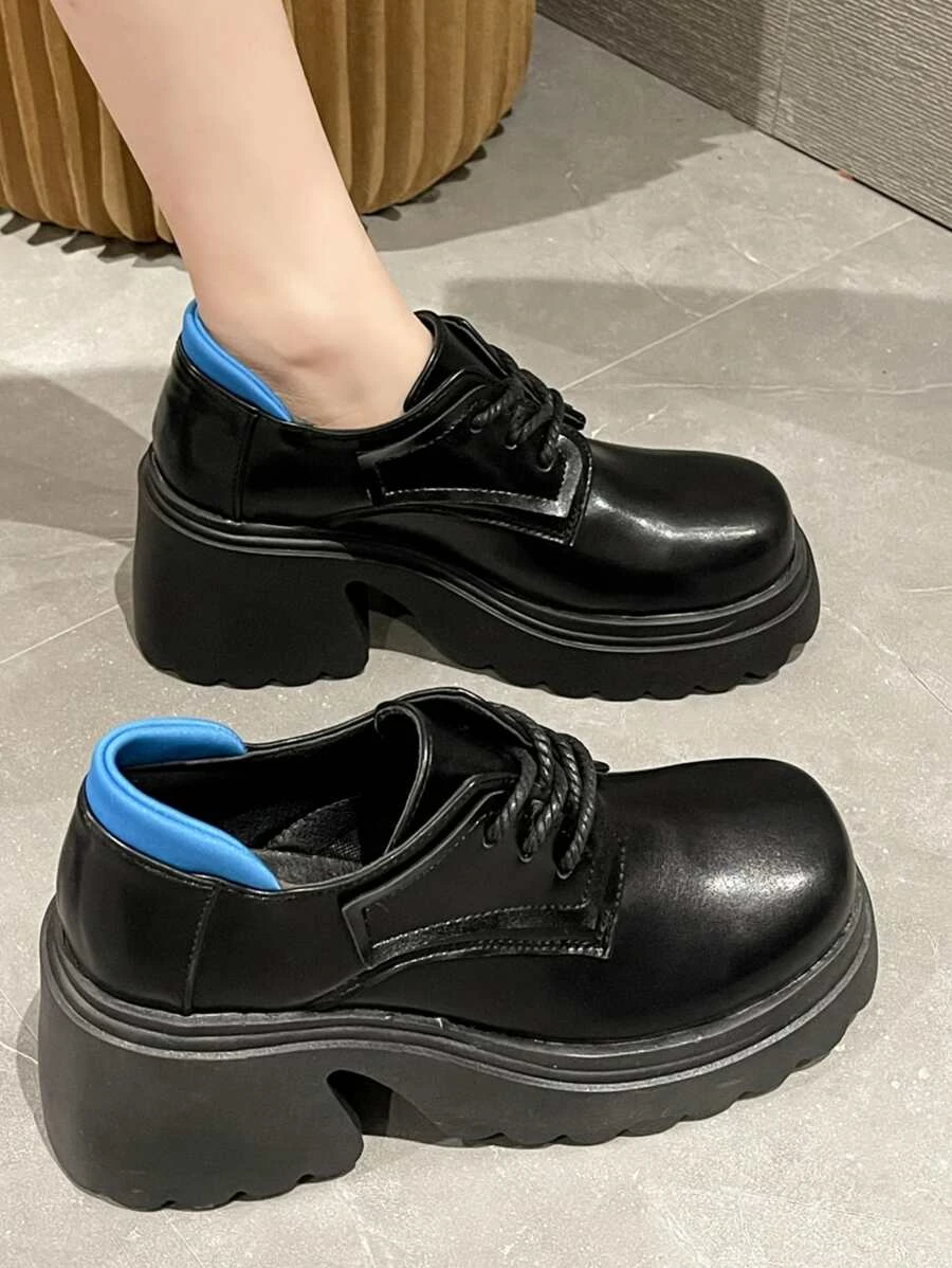 Women Lace-up Front Platform Shoes, Preppy Black Oxford Shoes