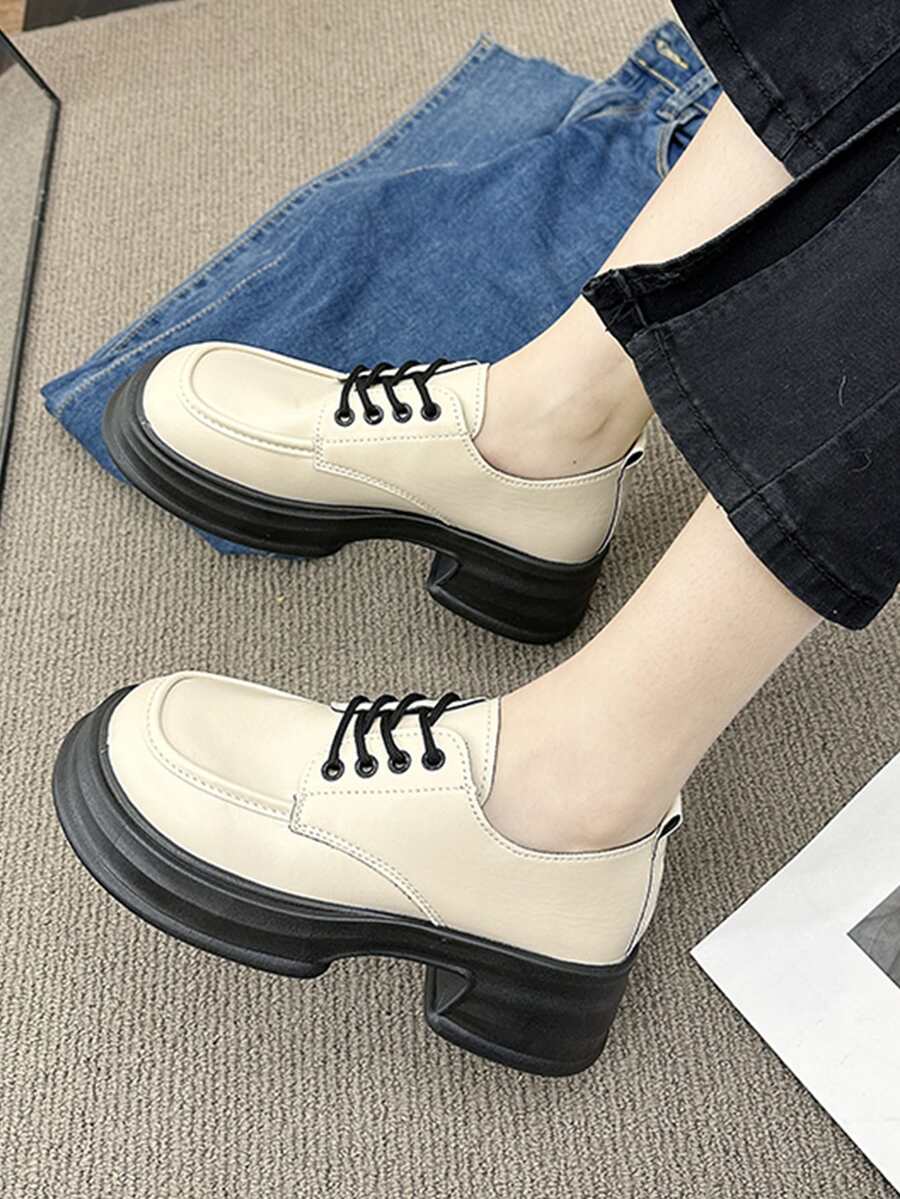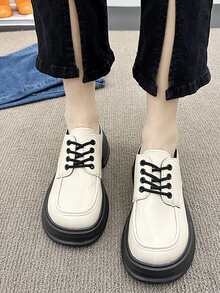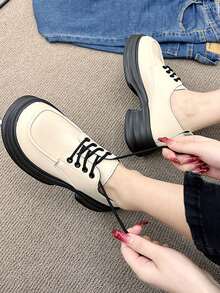 Women Minimalist Lace-up Front Flatform Shoes, Preppy Beige Oxford Shoes
