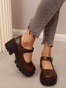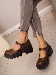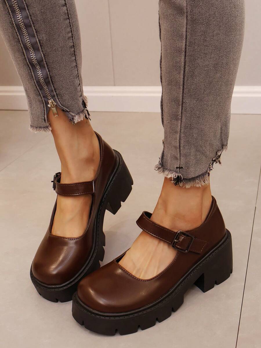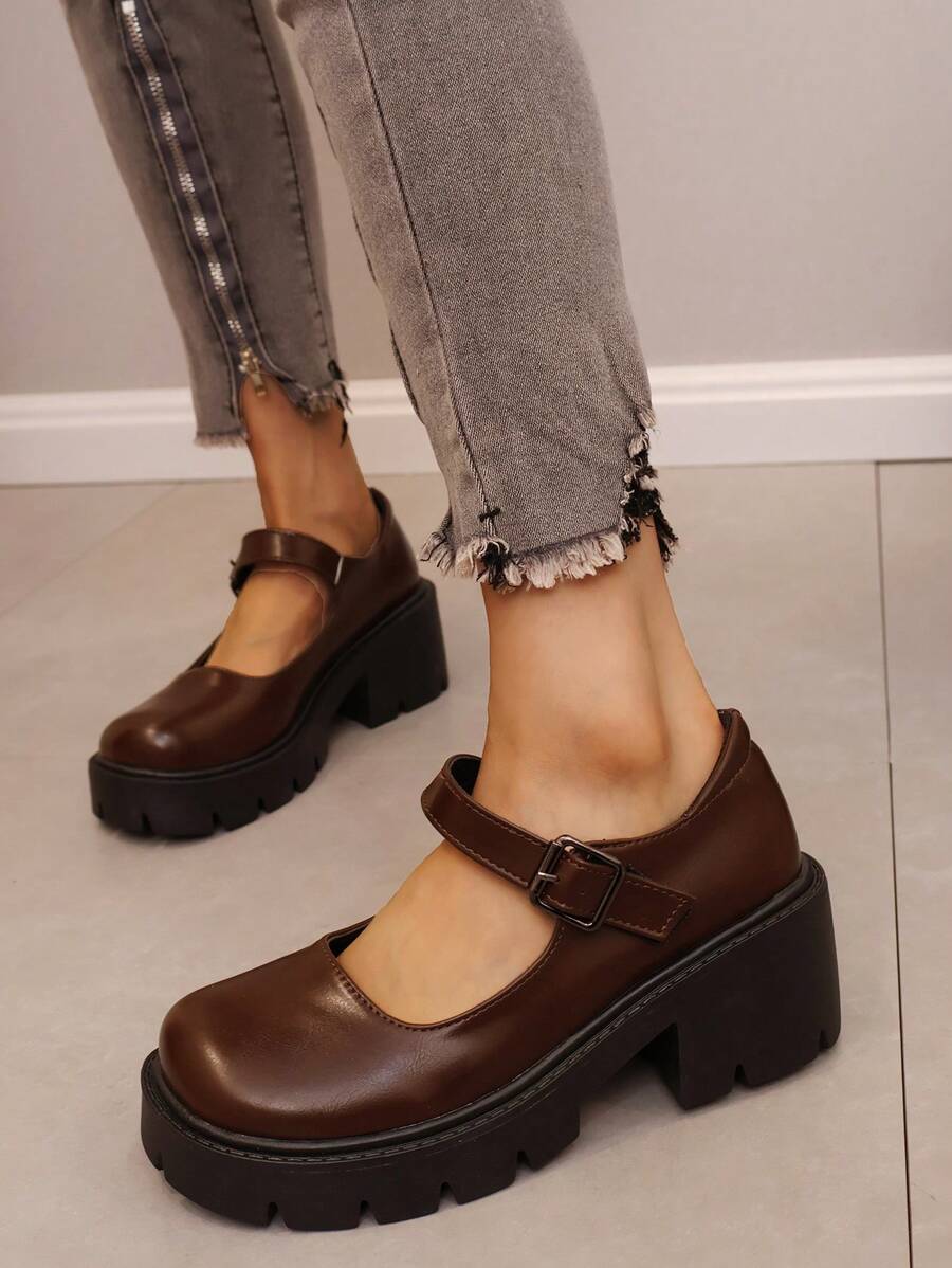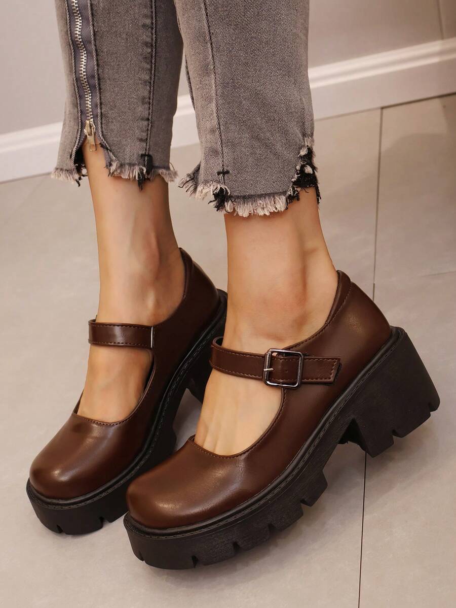 Women Minimalist Platform Mary Jane Shoes, Preppy Brown Shoes