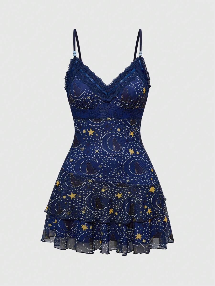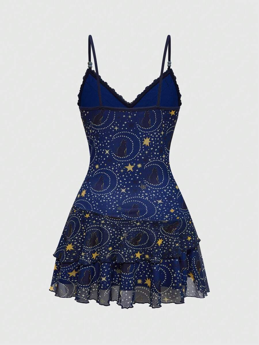 Hippie Women Moon & Star Print Casual Camisole Short Dress
