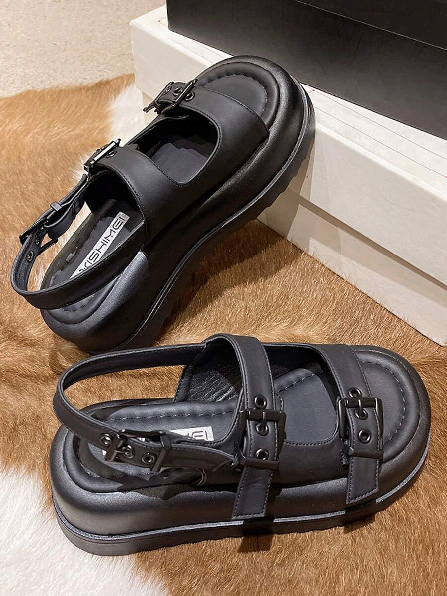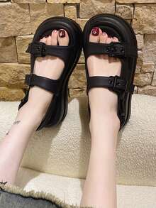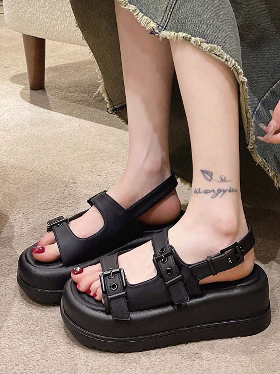 Women Buckle Decor Flatform Slingback Sandals, Casual Outdoor Sandals