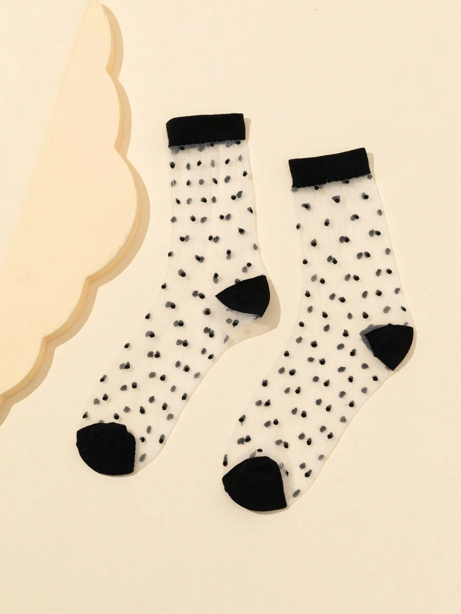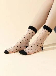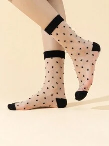 Women'S Black Polka Dot Sheer Ankle Socks