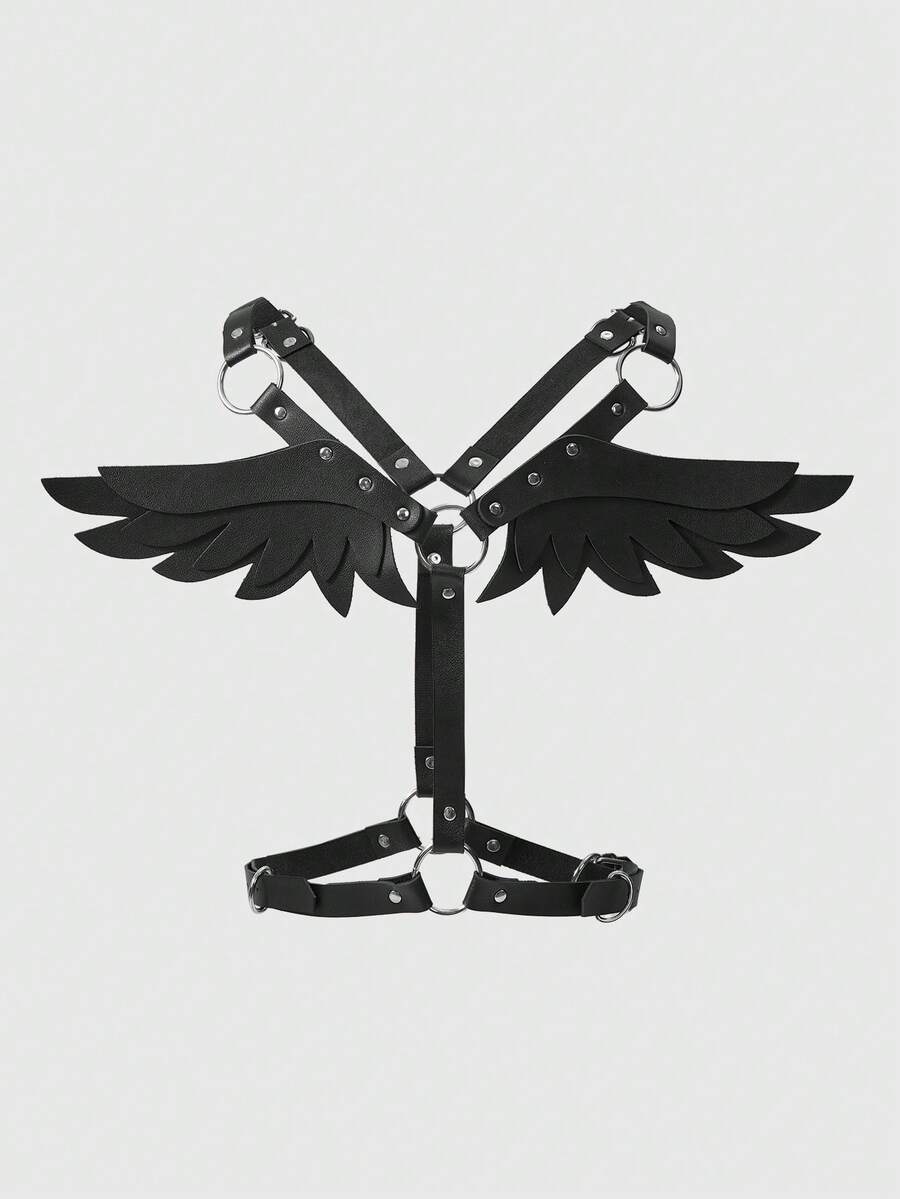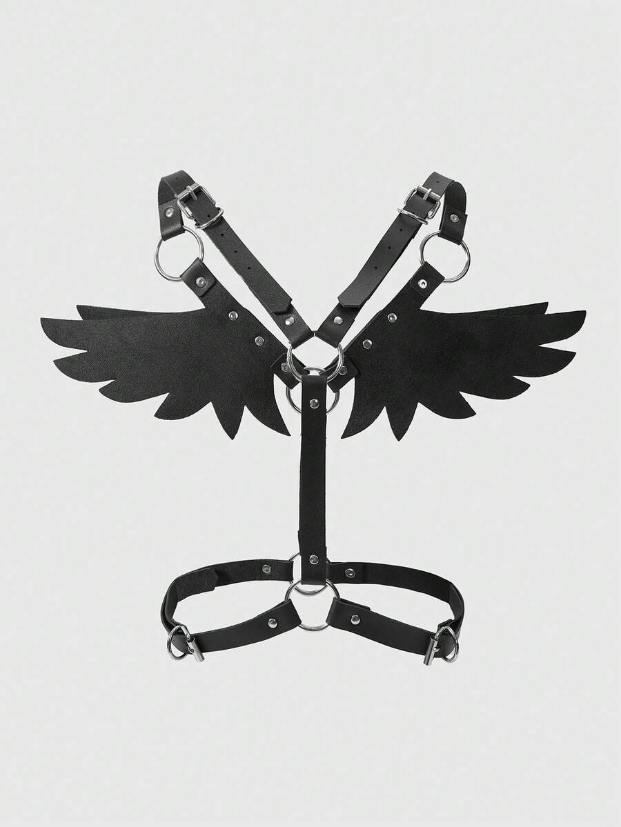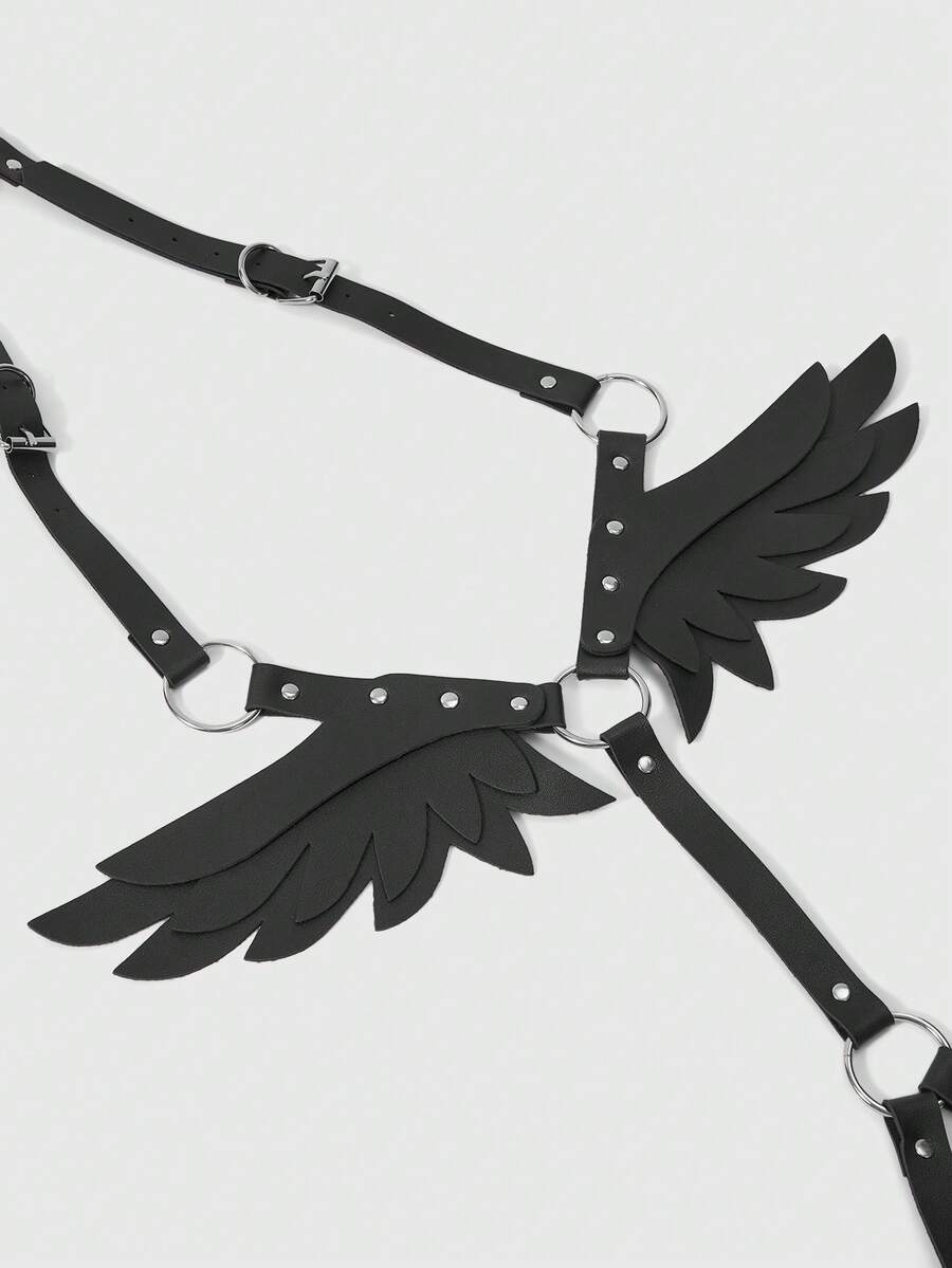 Women Sexy PU Leather Wings Harness Sexy Lingerie Outfit Garter Belt Gothic Costume Black Adjustable