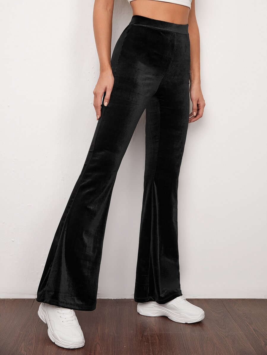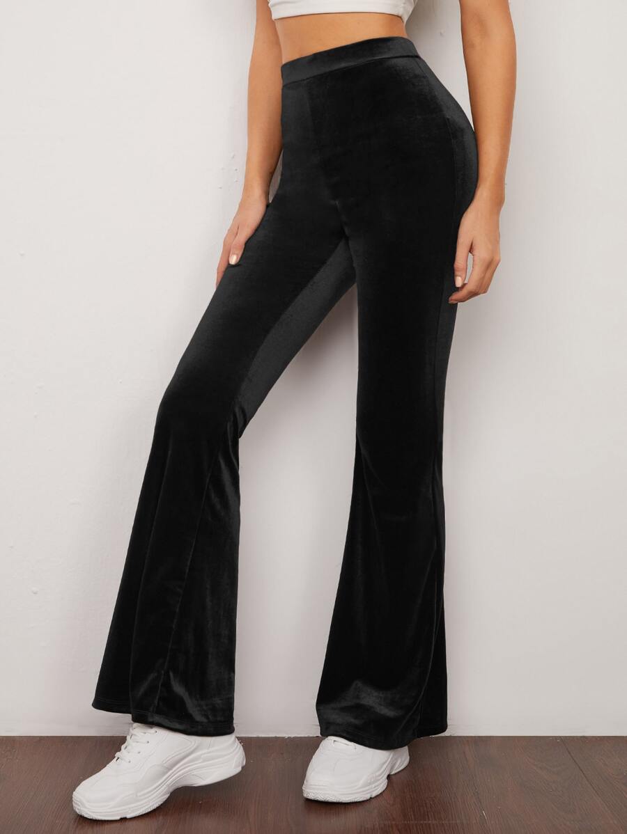 Women Solid Color Daily Wear Flare Leg Velvet Pants