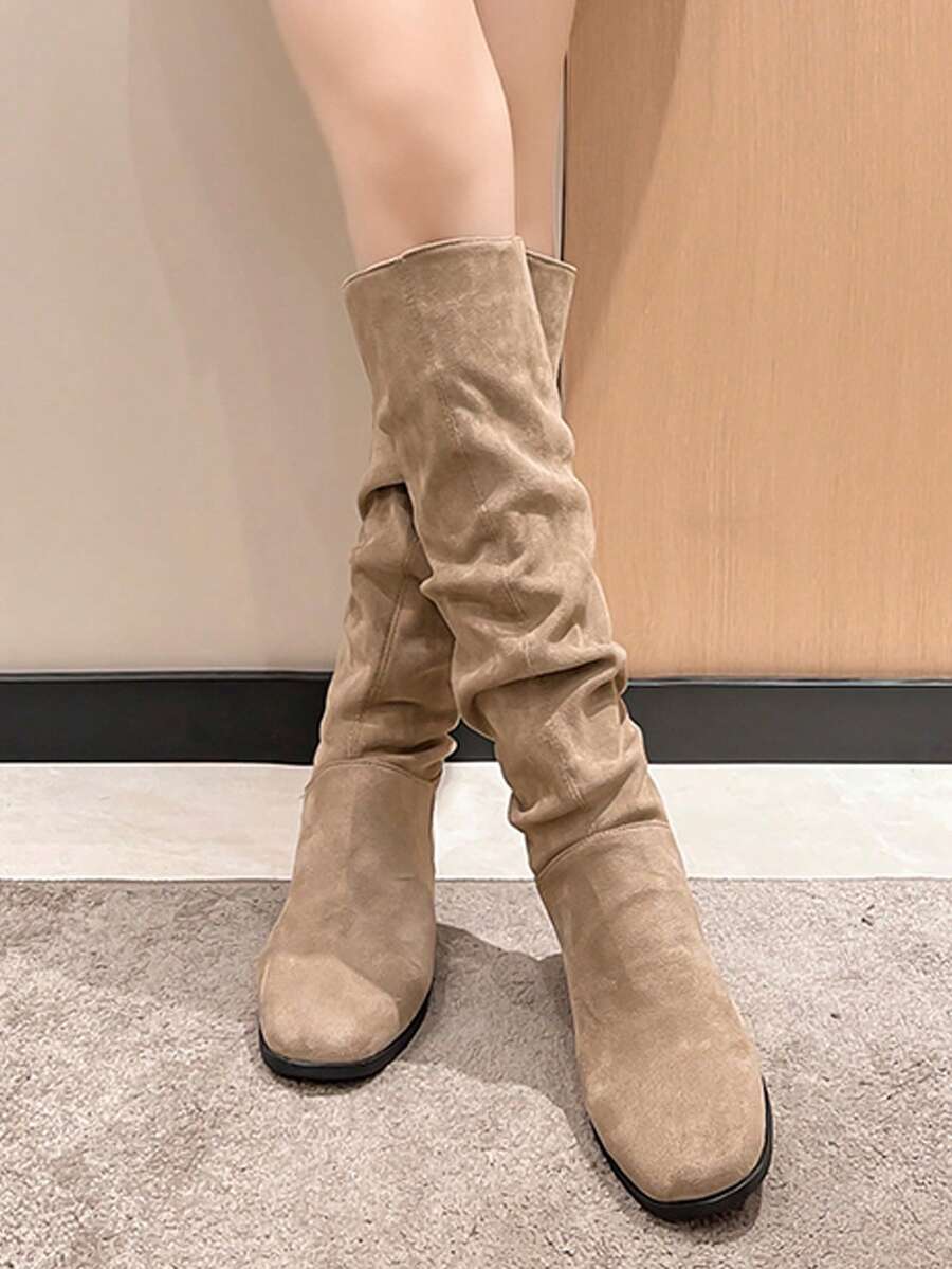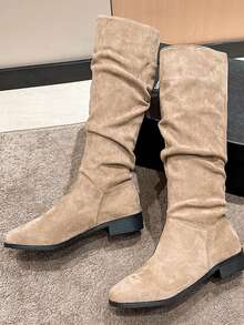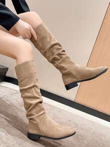 Women Solid Slip On Point Toe Slouchy Boots, Cool Outdoor Fashion Boots