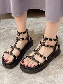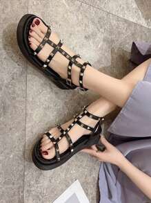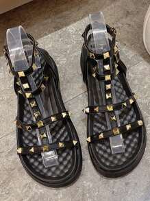 Women Studded Decor Flatform Gladiator Sandals, Punk Sandals Black