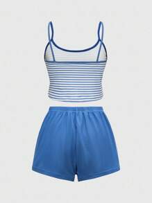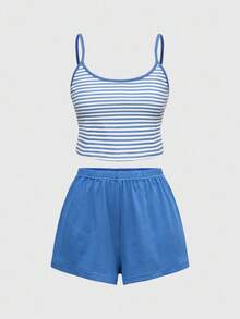 Women Summer Casual Knitted Striped Camisole & Shorts Pajama Sets, Comfortable
