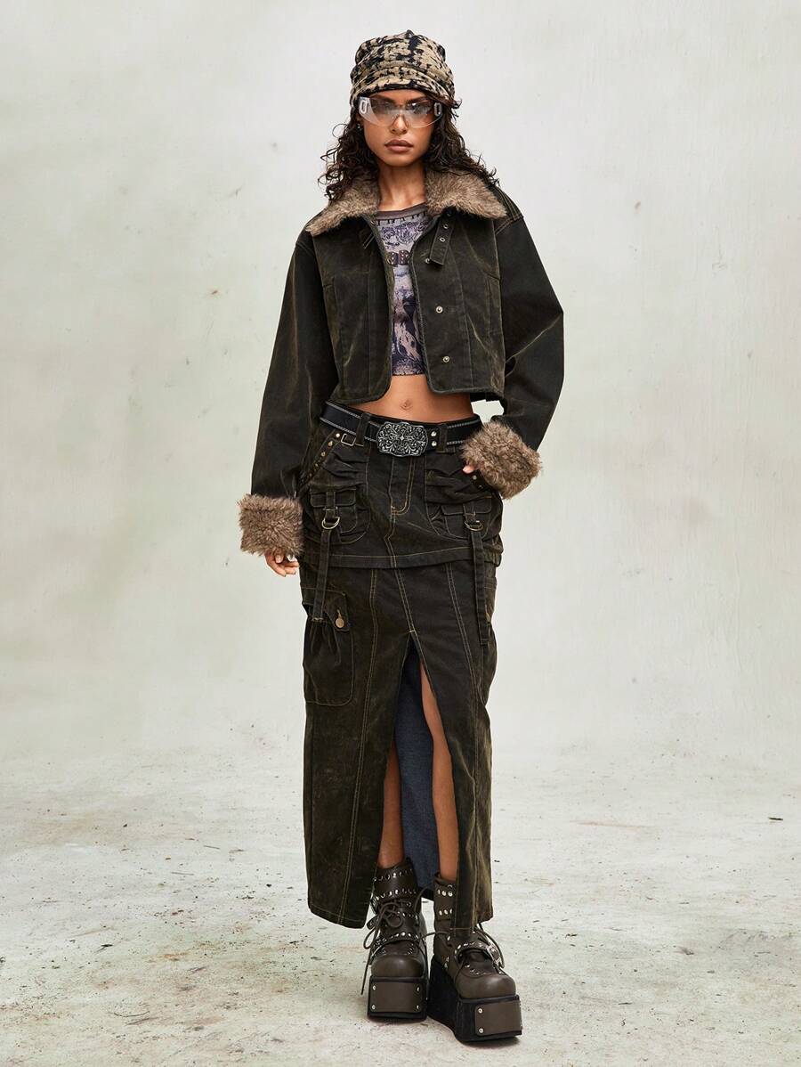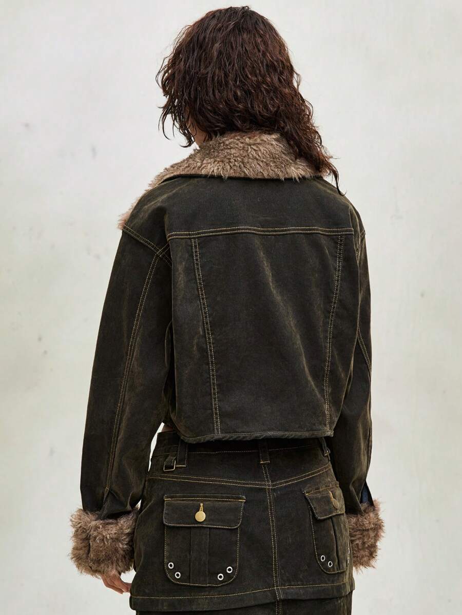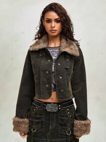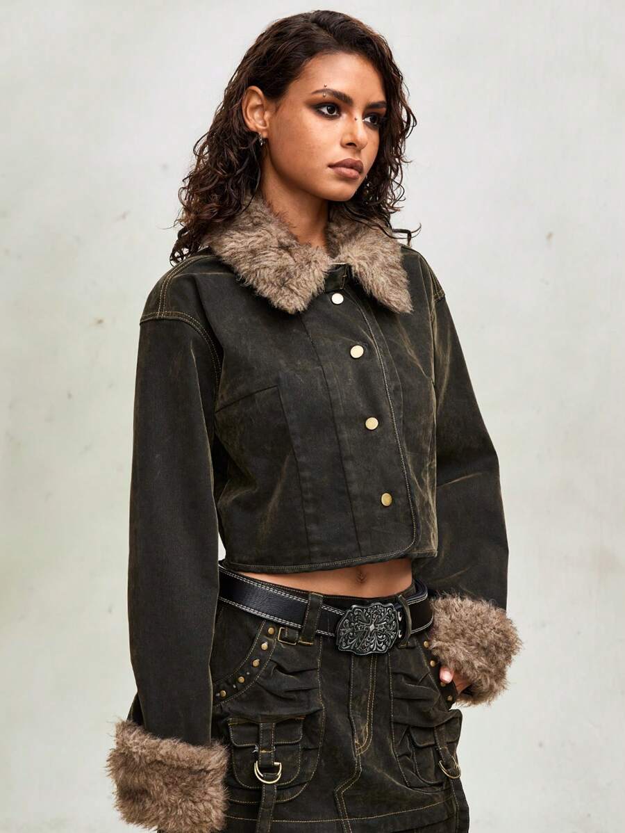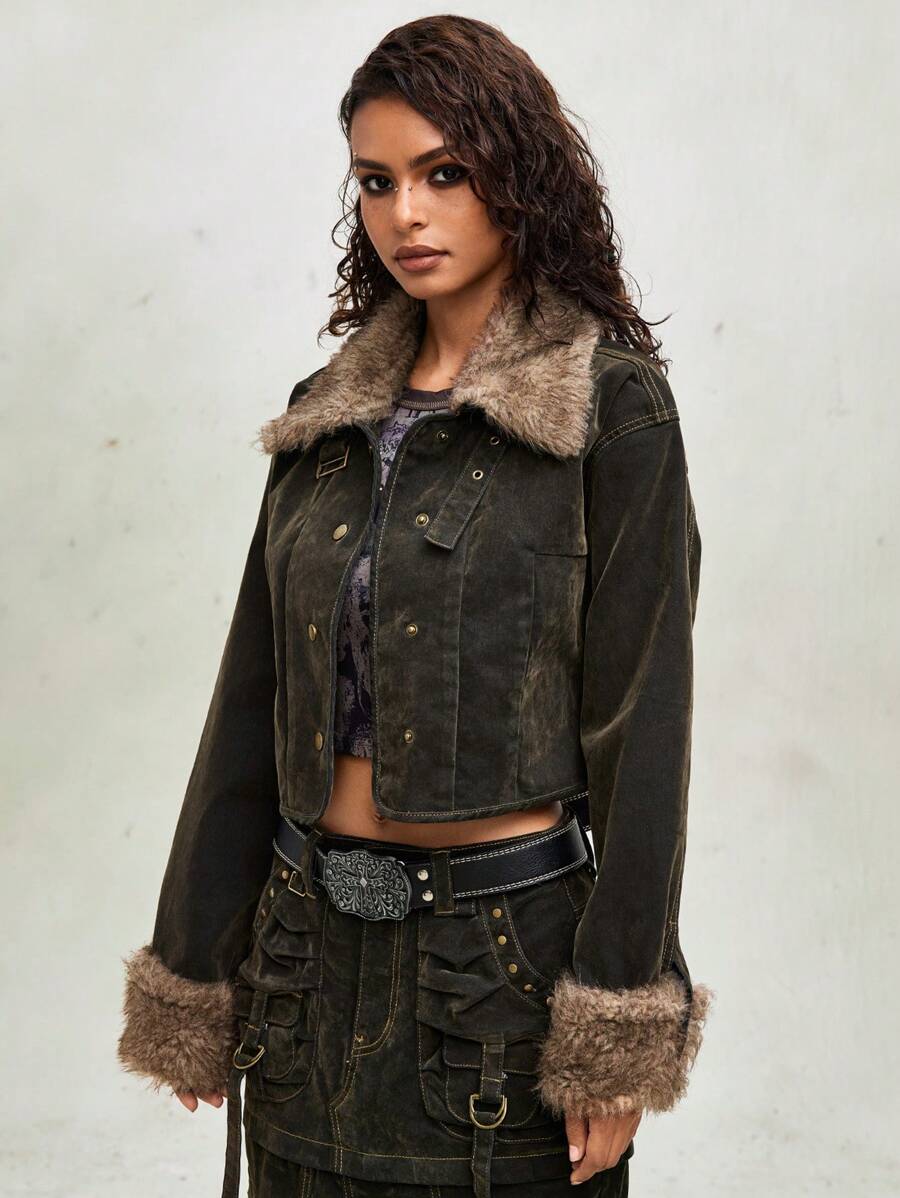 Grunge Punk Women Vintage Flocked Denim Jacket