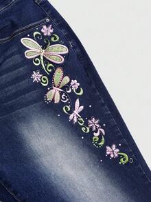 Fairycore Women Y2k Retro Butterfly Sequin Embroidery Capri Jeans