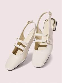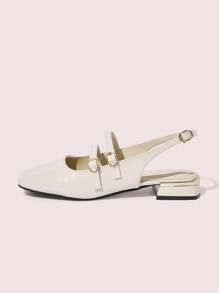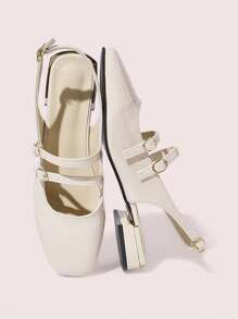 Women's Beige Closed Toe Backless Mule Heels, Chunky Heel Formal Work Shoes, Low Heel Dress Flats