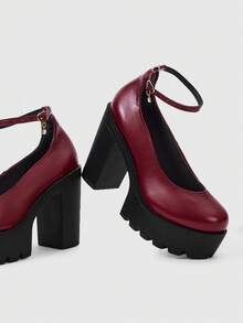 Women's Closed Toe Cross-Strap Mary Jane Shoes, Punk Goth Platform Thick Heel One-Strap Buckle Strap JK Uniform Shoes, Waterproof Formal Work High Heels