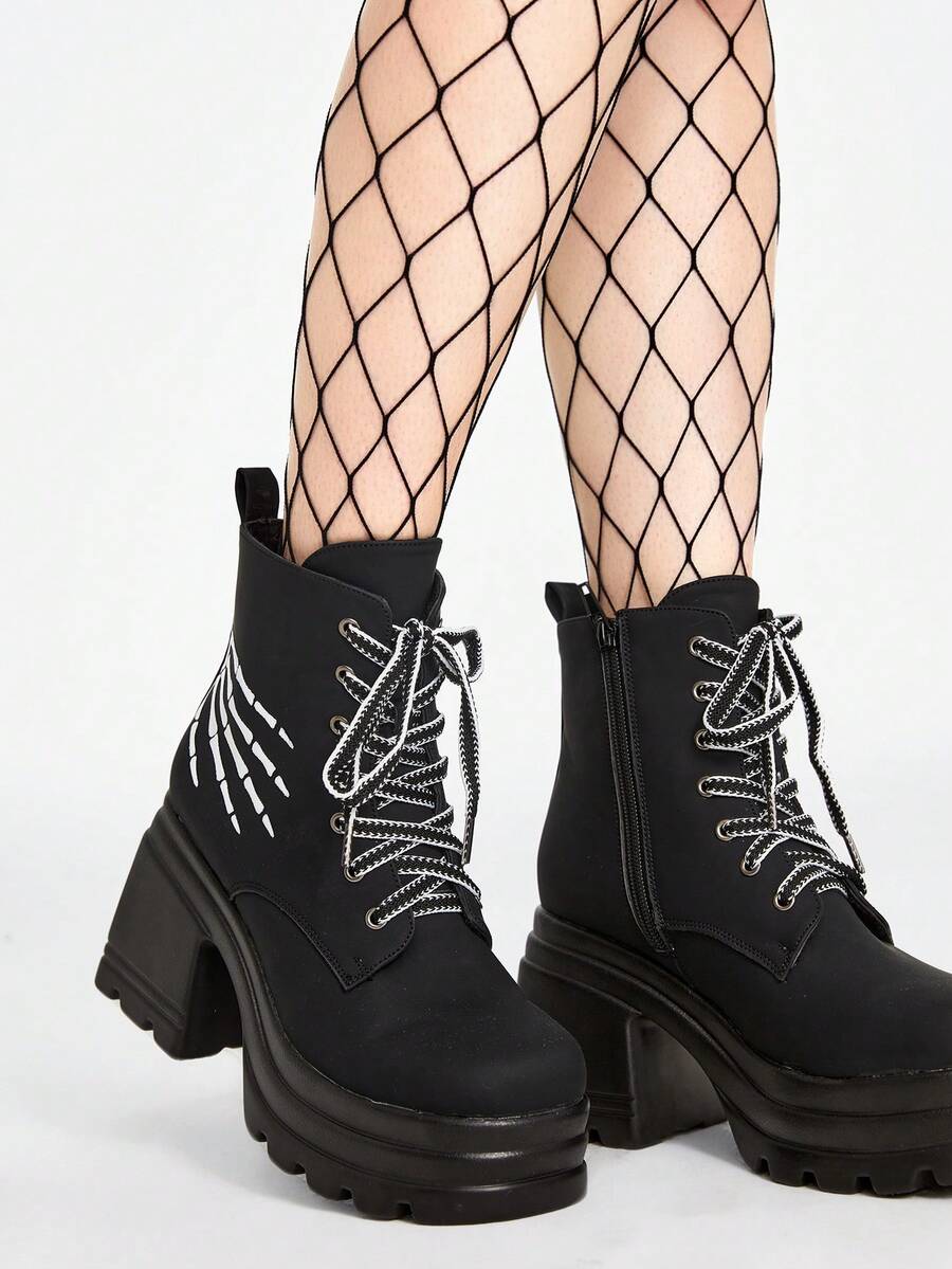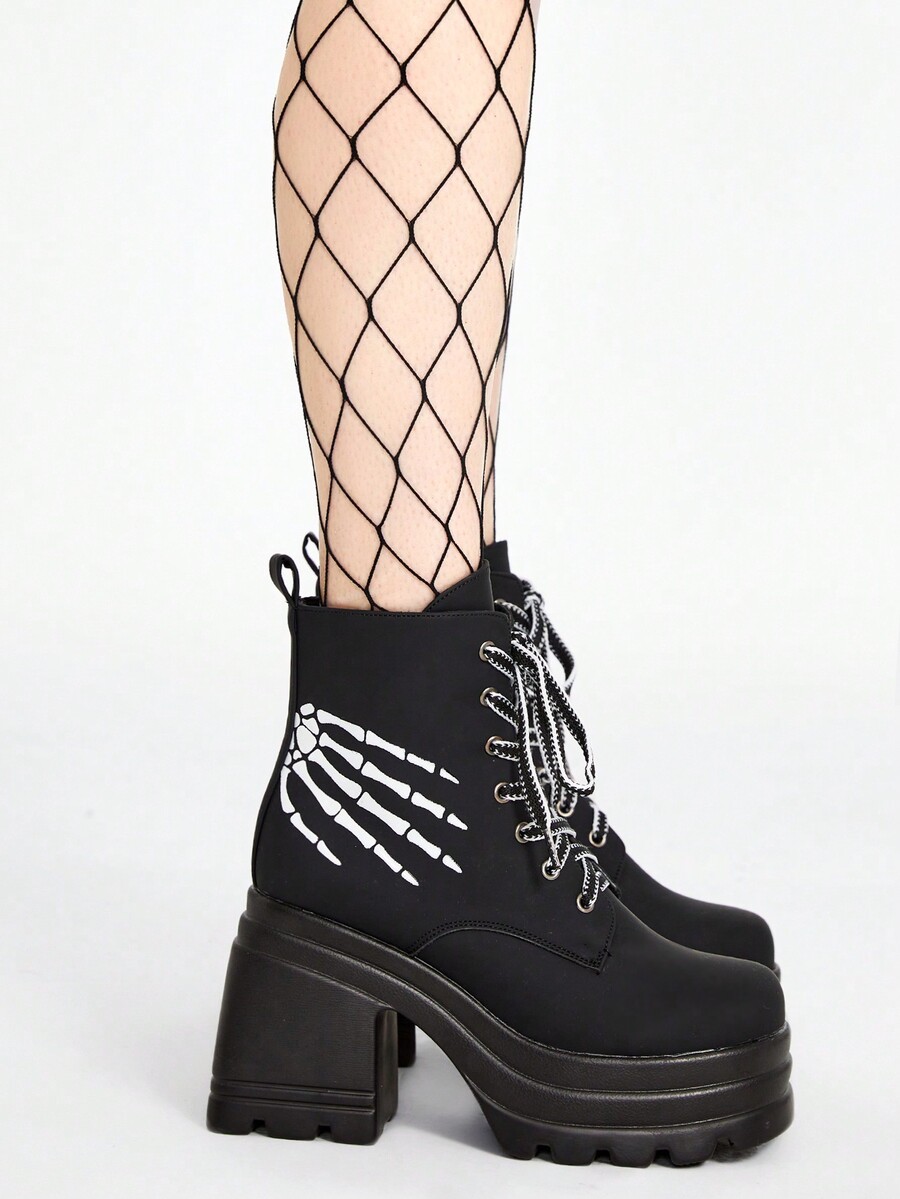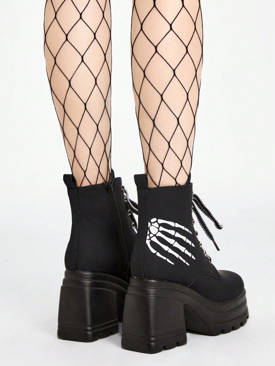 Goth Women's Comfy Thick Sole Skull Hand Boots