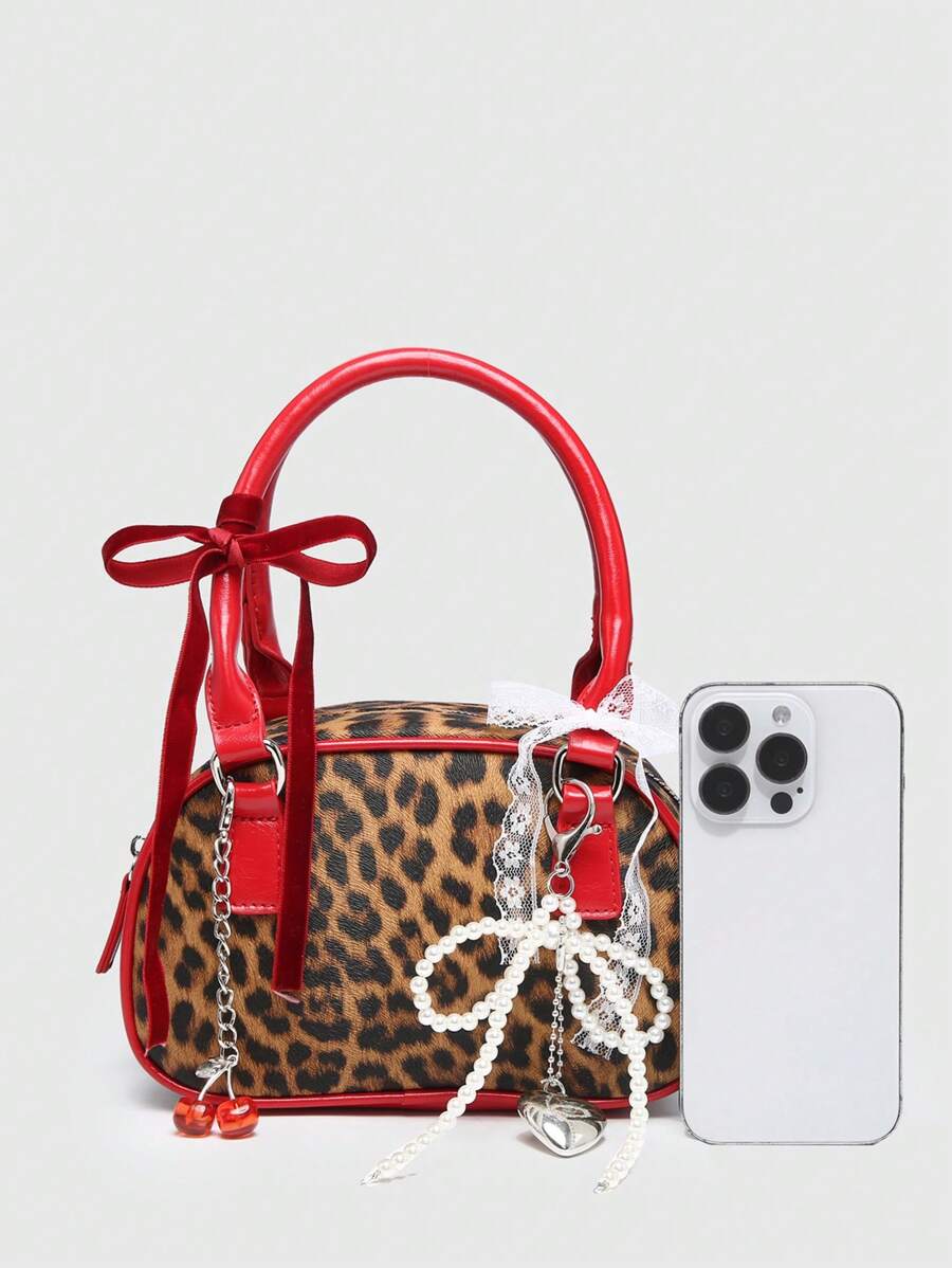 Women's Cute Ballet Style Cherry Pearl Bow Decor Mini Handbag