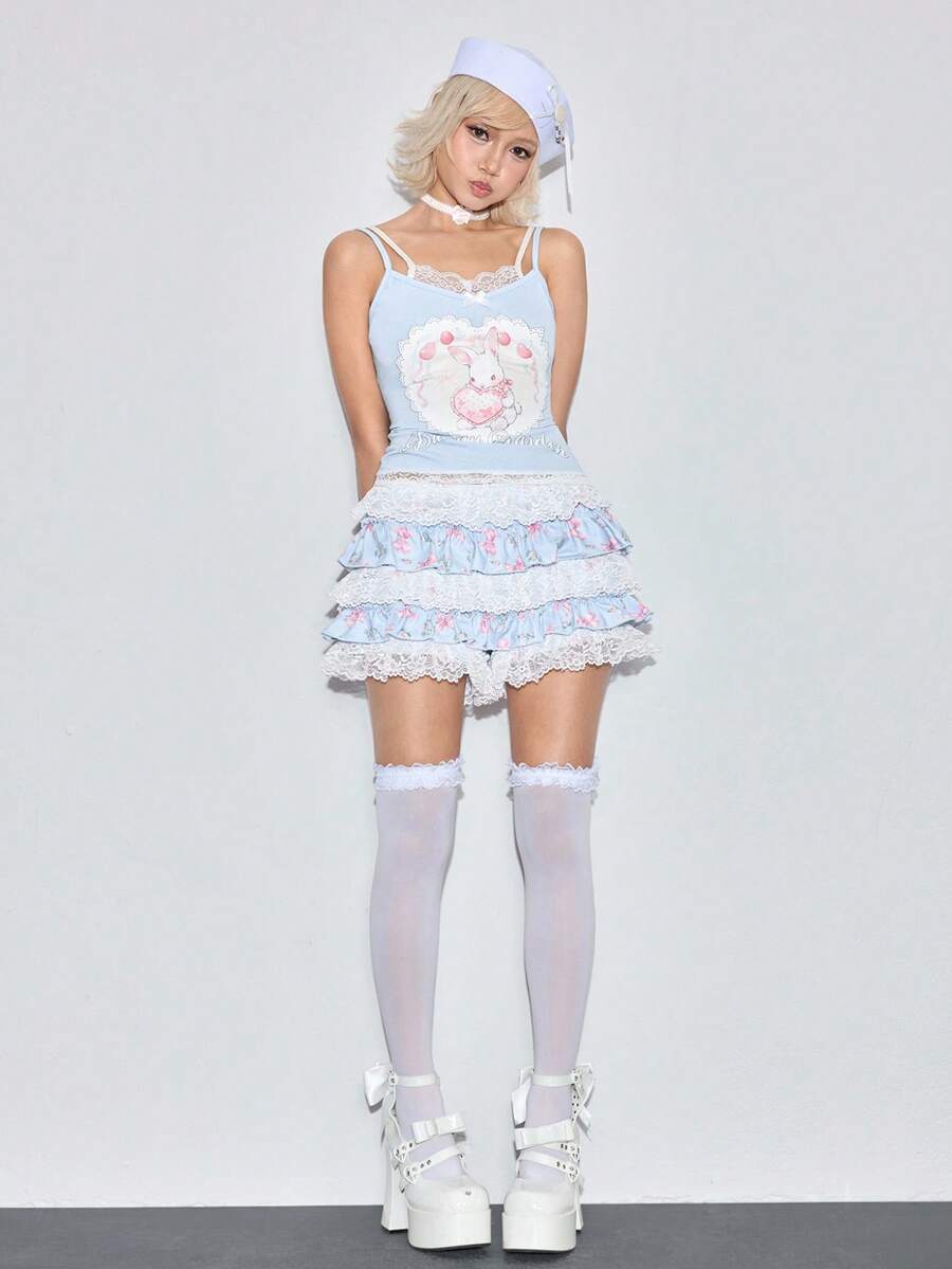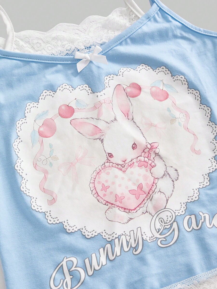 Kawaii Women's Cute Rabbit Bow Print 2 In 1 Set