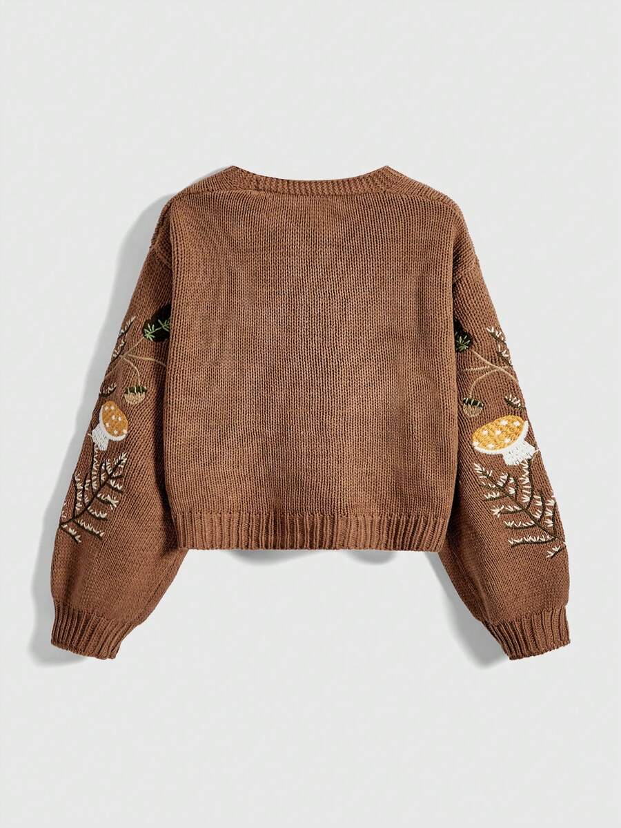 Women's Fairycore Mushroom Vine Embroidered Knit Cardigan