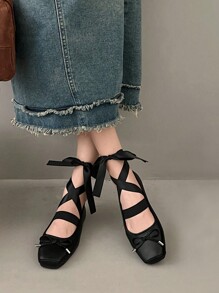 Kawaii Women's Flat Ballet Shoes With Ribbon Ties