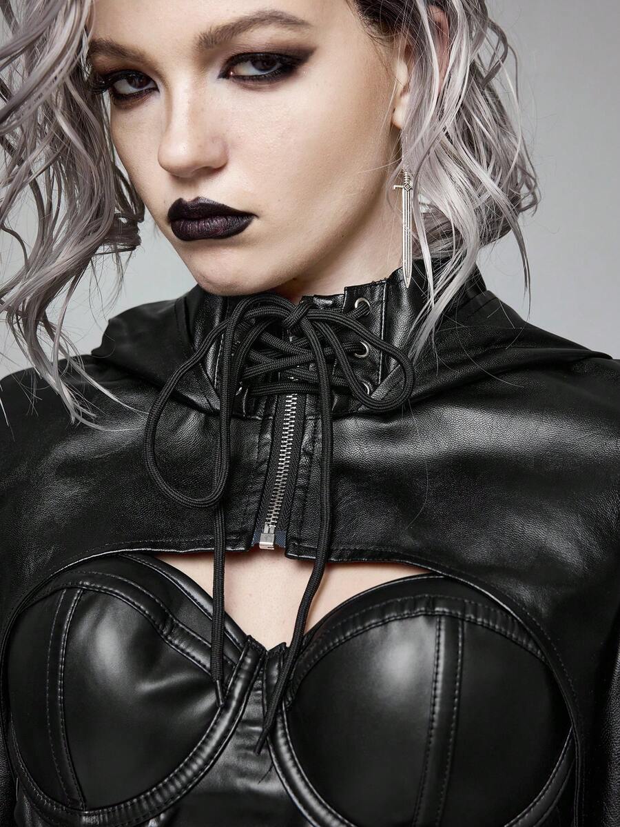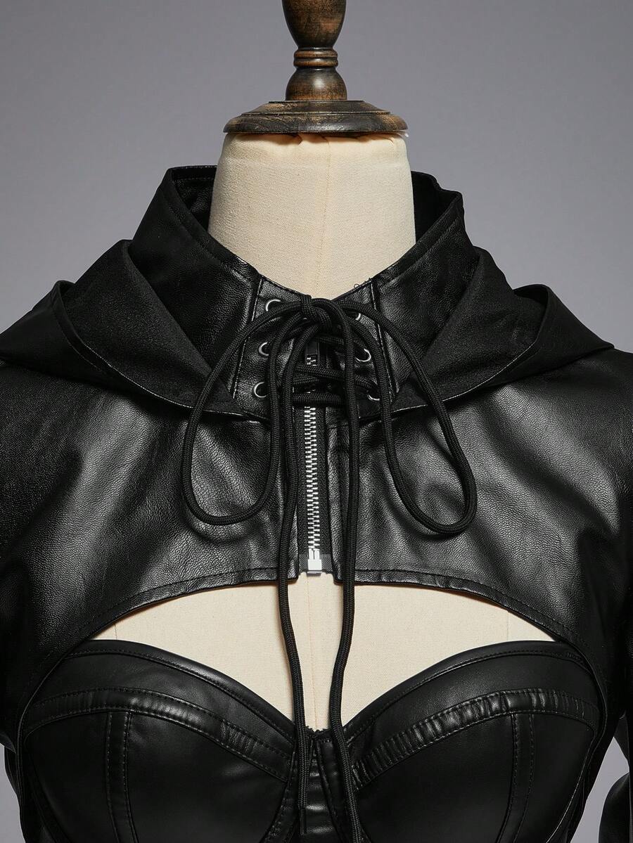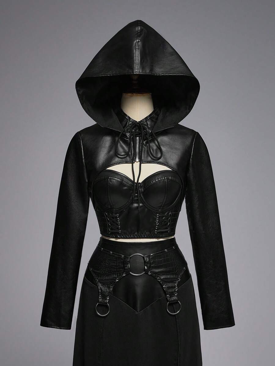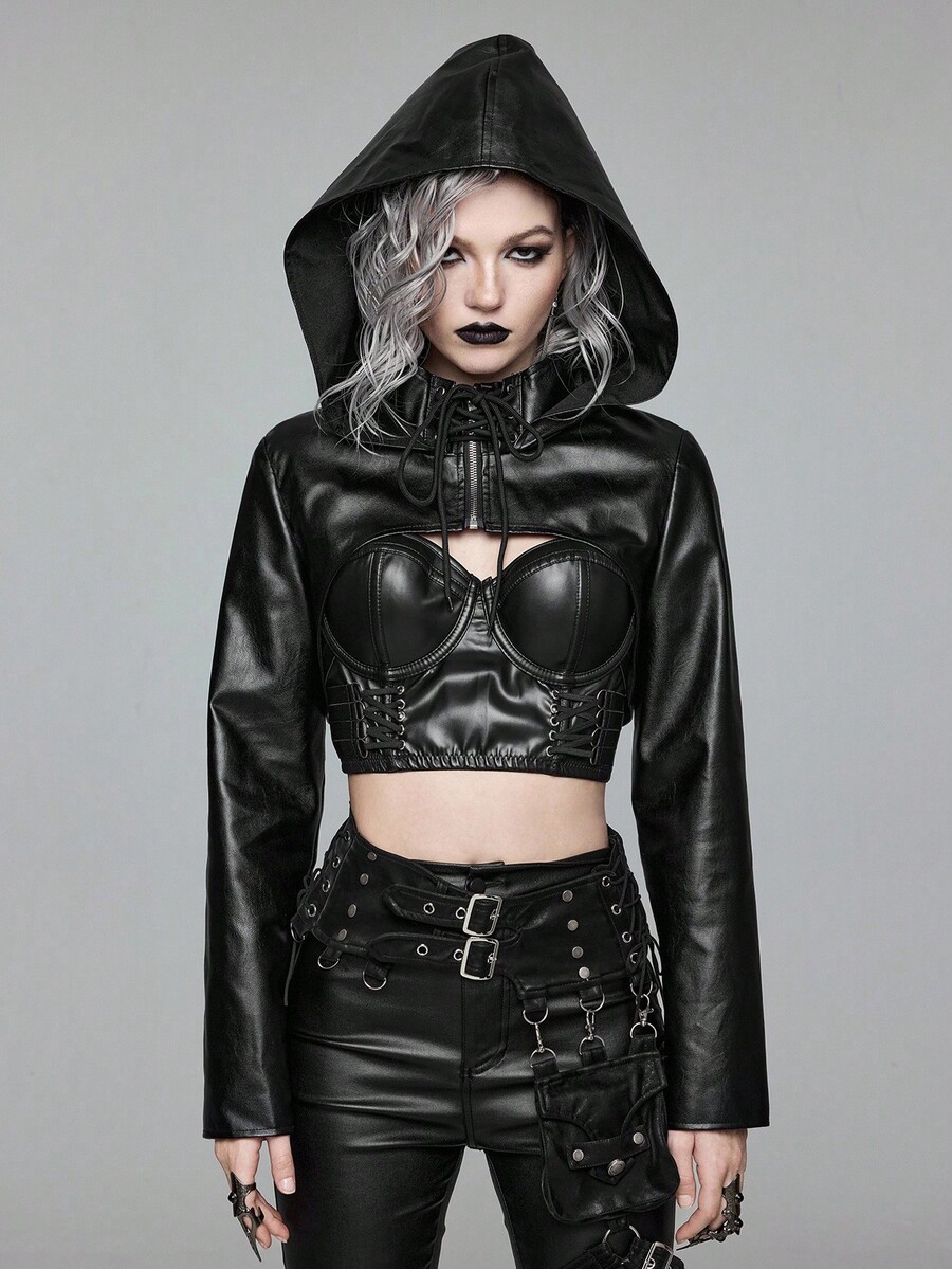 Women's Gothic Punk Hooded Cropped PU Leather Jacket