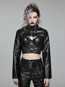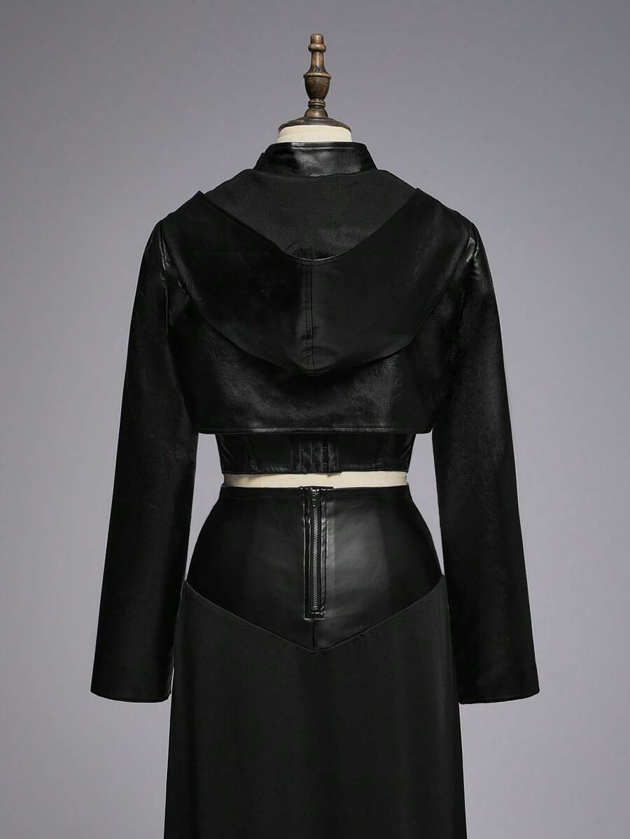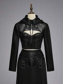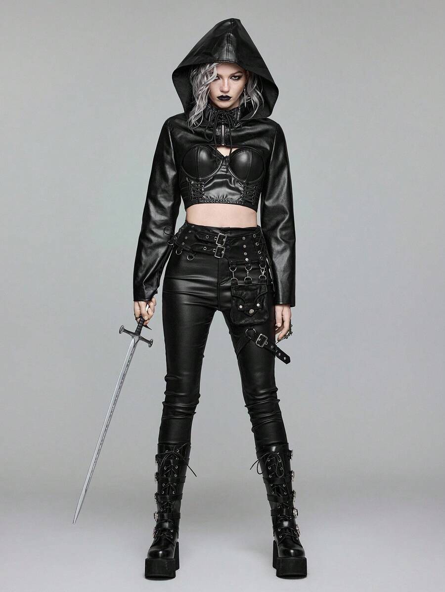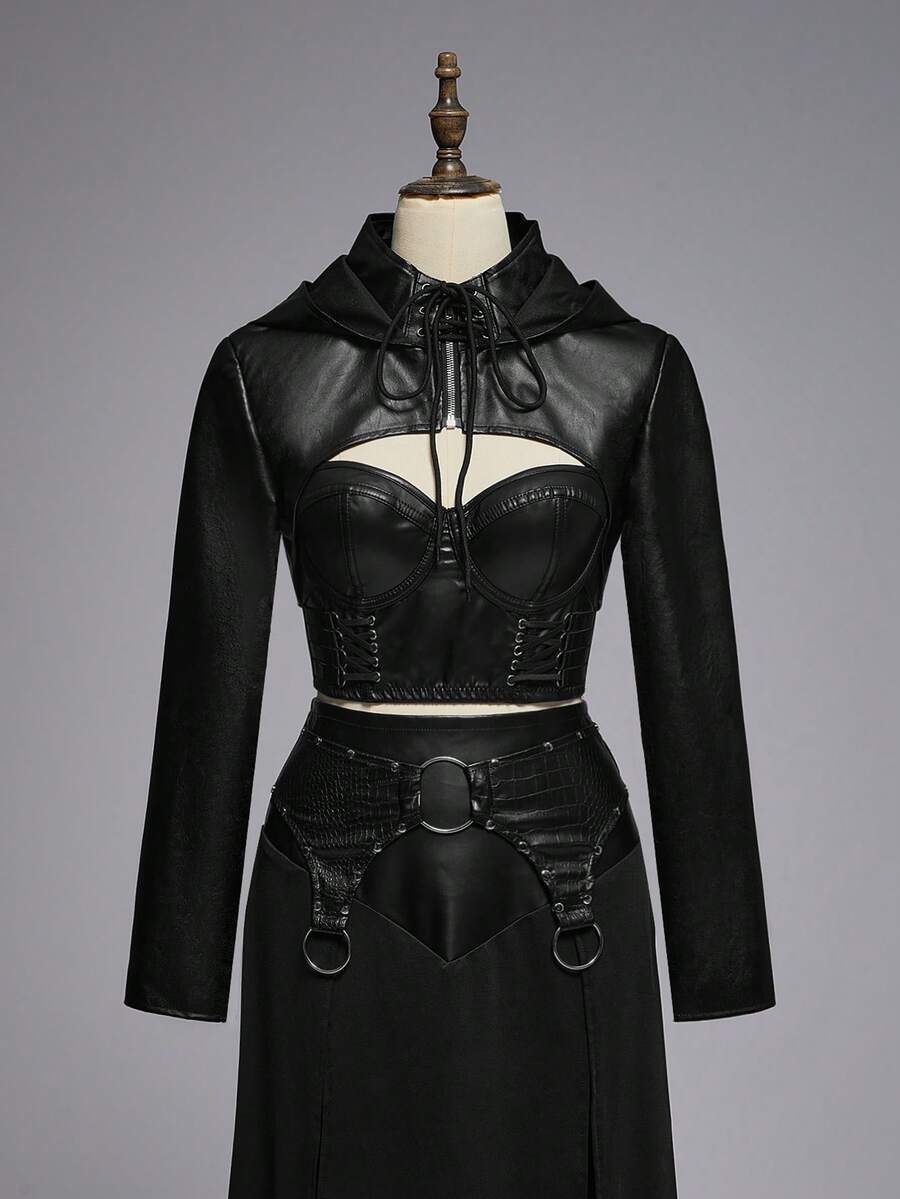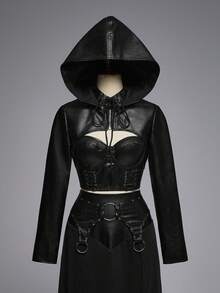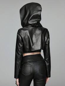 Women's Gothic Punk Hooded Cropped PU Leather Jacket