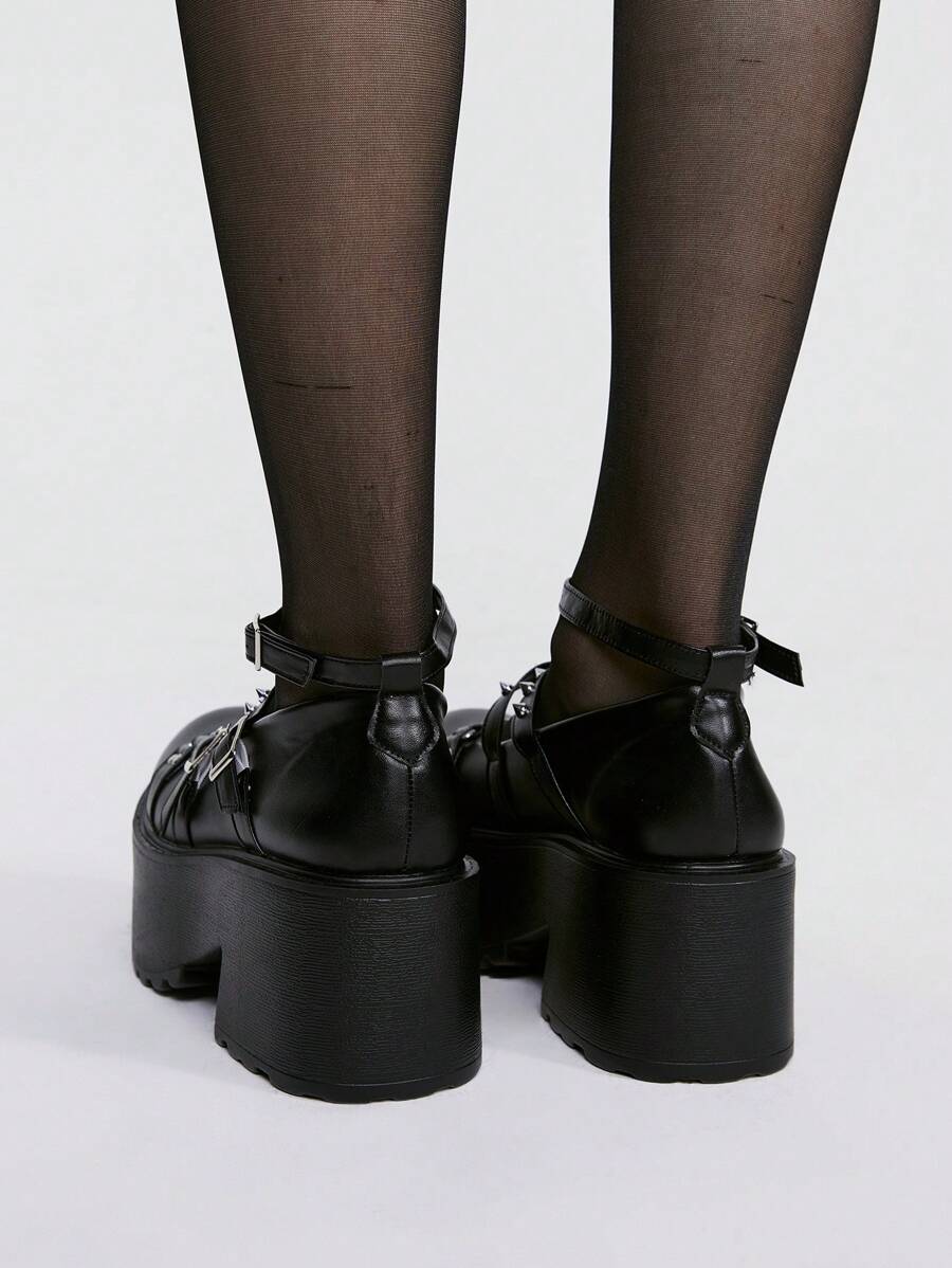Women's Gothic Punk Shoes With Heavy Metal Rivets, Cross Strap, And Mary Jane Design, Suitable For Party, Dress, School, And Wedge High Heels & Thick Soles