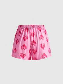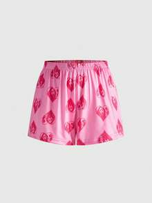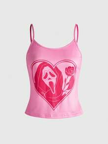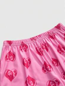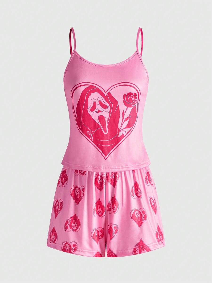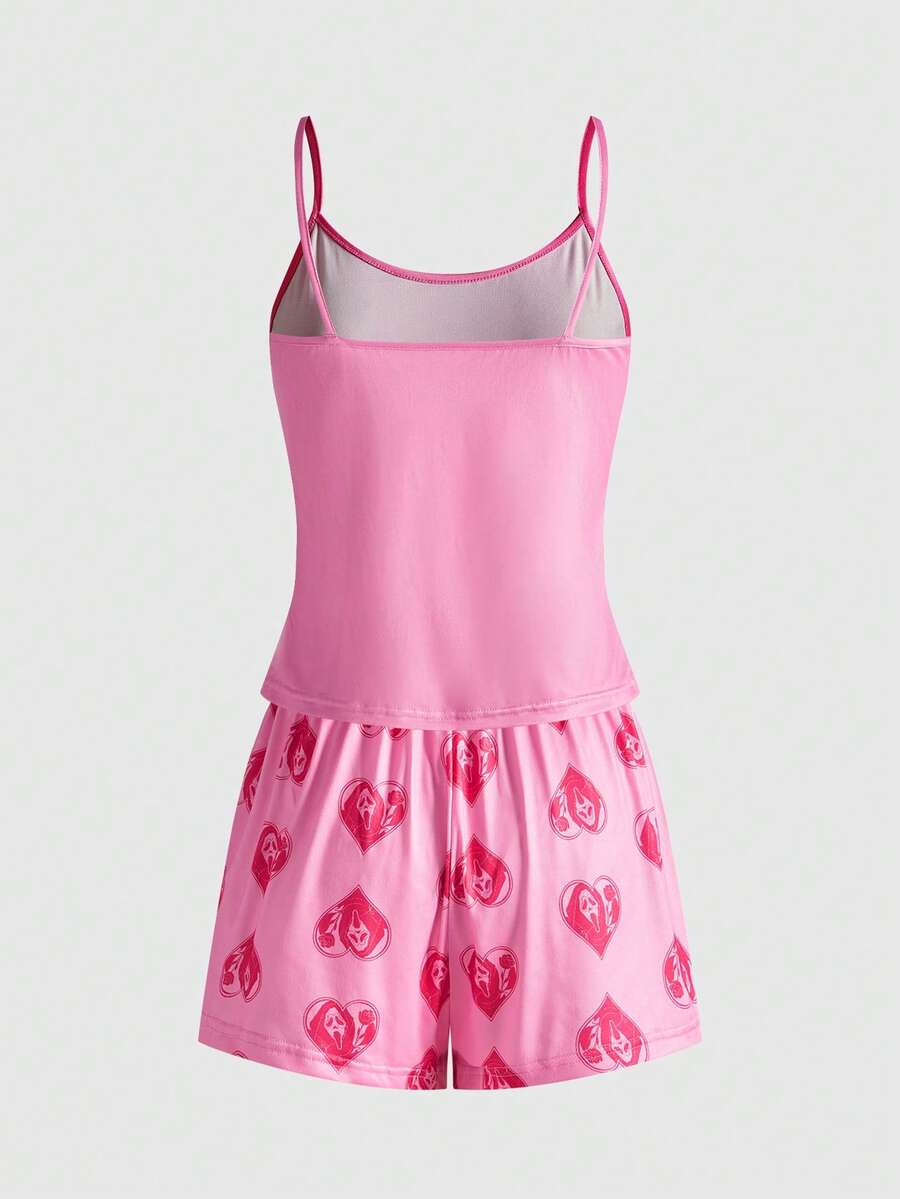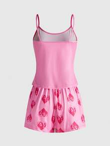Women's Gothic Valentine's Day Heart Rose Imp Pattern Contrast Color Strap Camisole & Shorts Casual Pajama Set