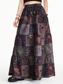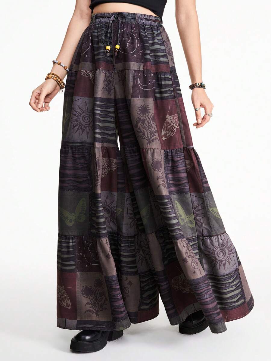 Women's Hippie Style Moth & Sun Print Loose Wide Leg Pants