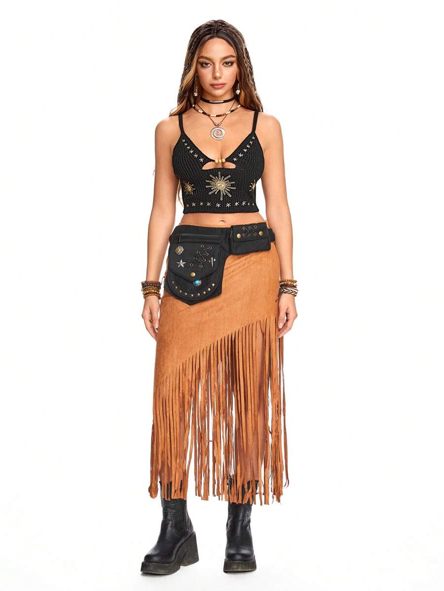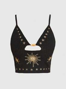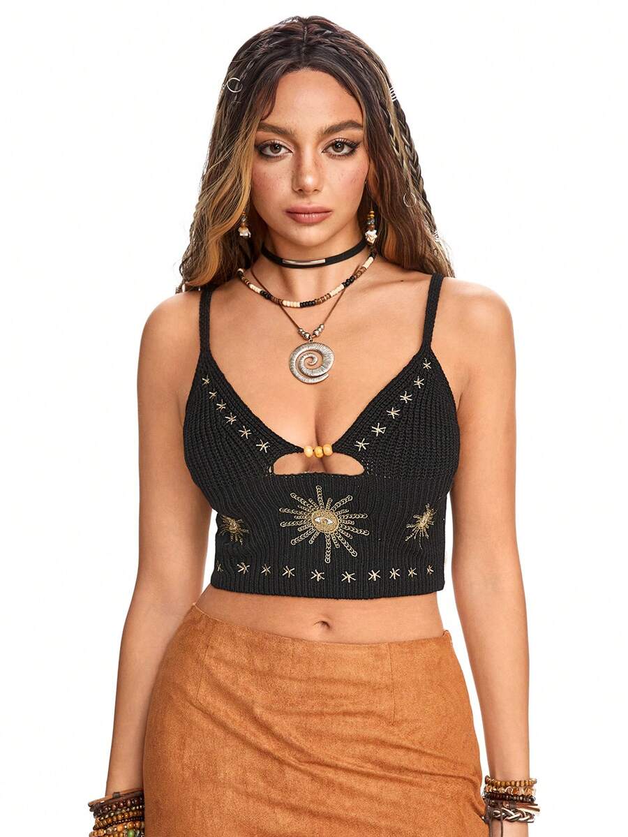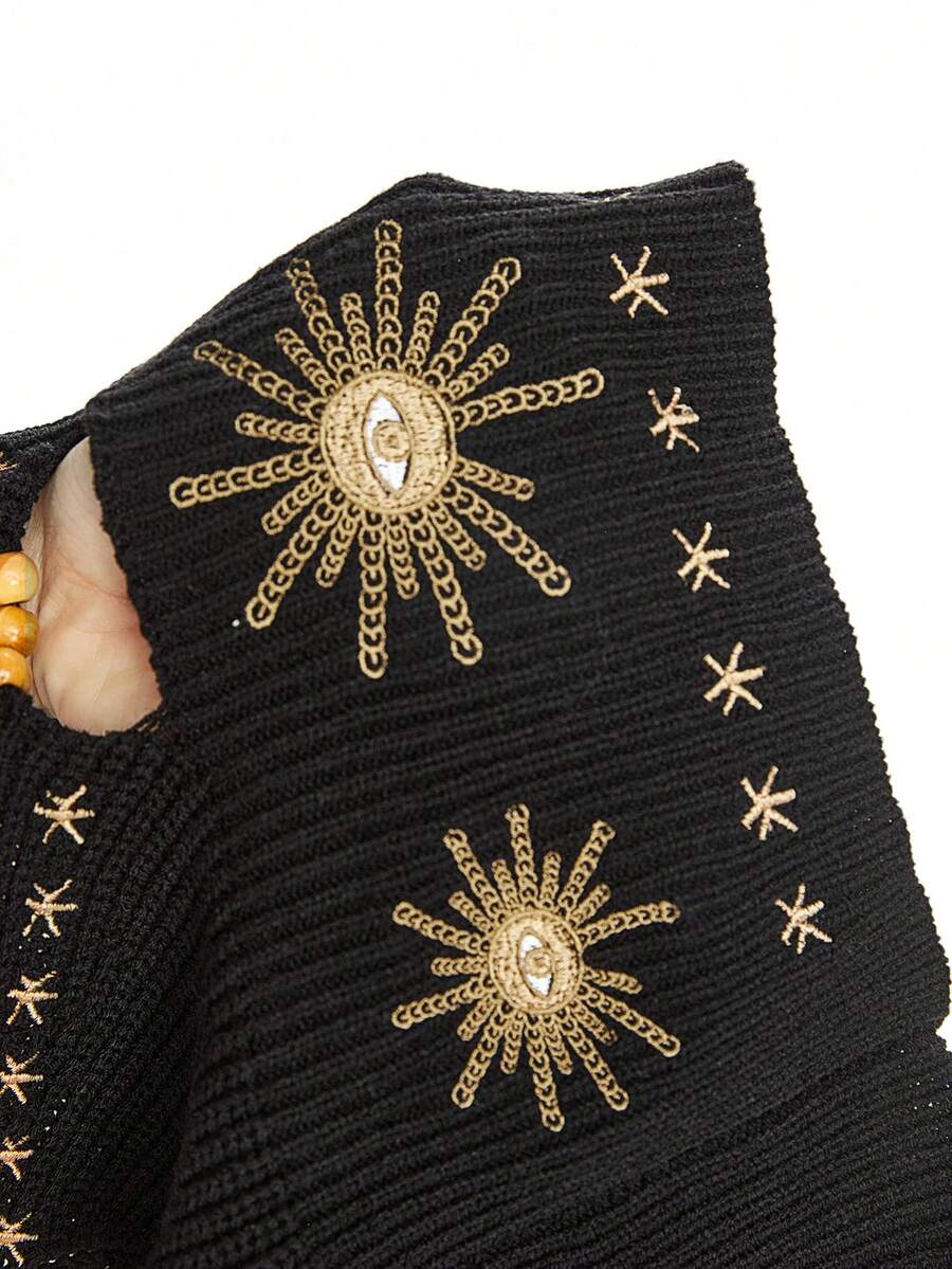 Women's Knitted Eye Embroidered Hippie Style Tops