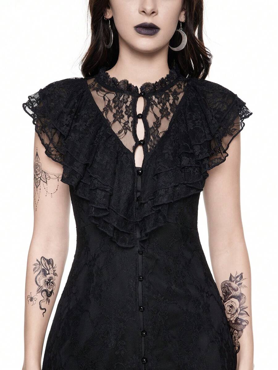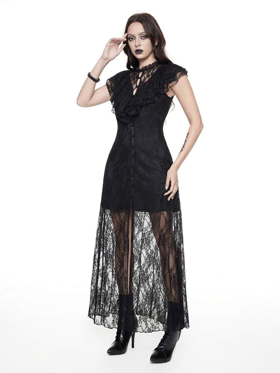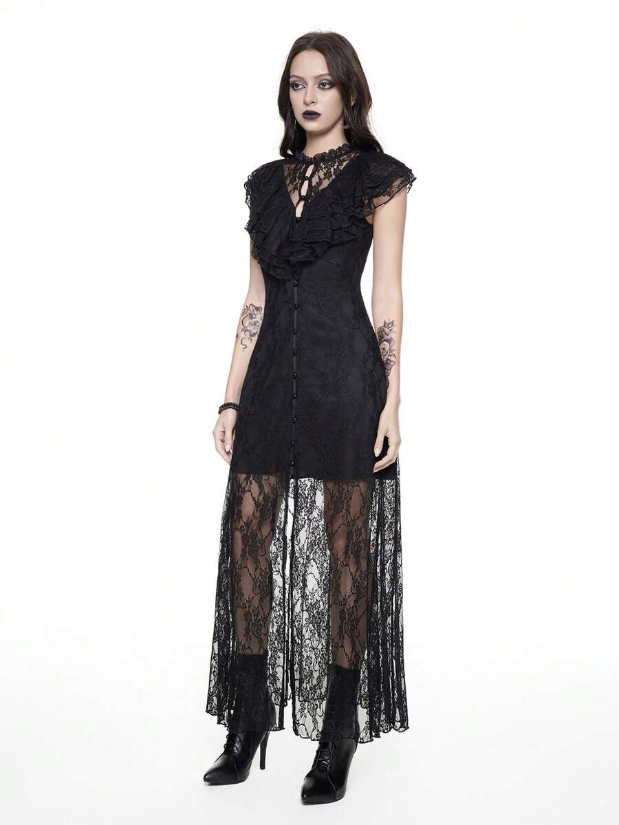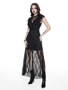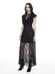 Women's Lace Splice Sleeveless Simple Fitted Goth Dress