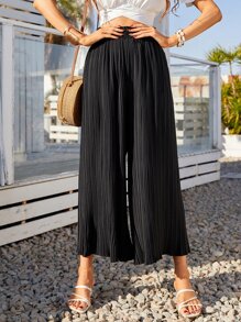 Women's Pleated Paper Bag Waist Allover Print Pants, Casual Holiday Long Trousers,Back To School Outfits,Fall Outfits,Office Wear,Commute,Minimalist,Old Money,Simple,Teacher Pants Winter Black