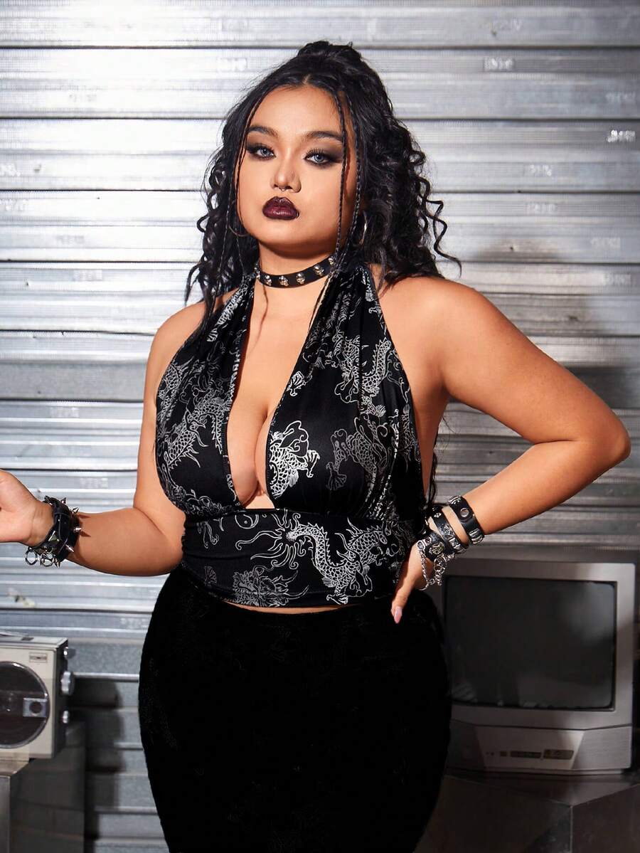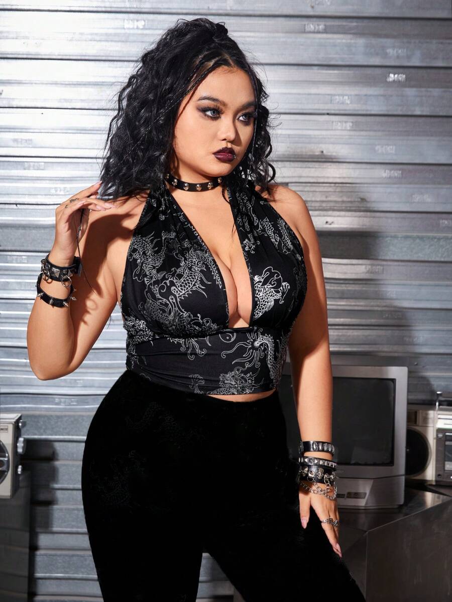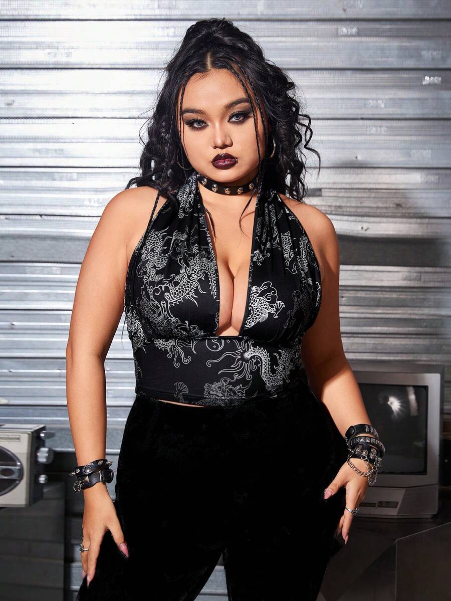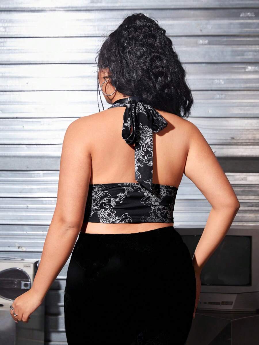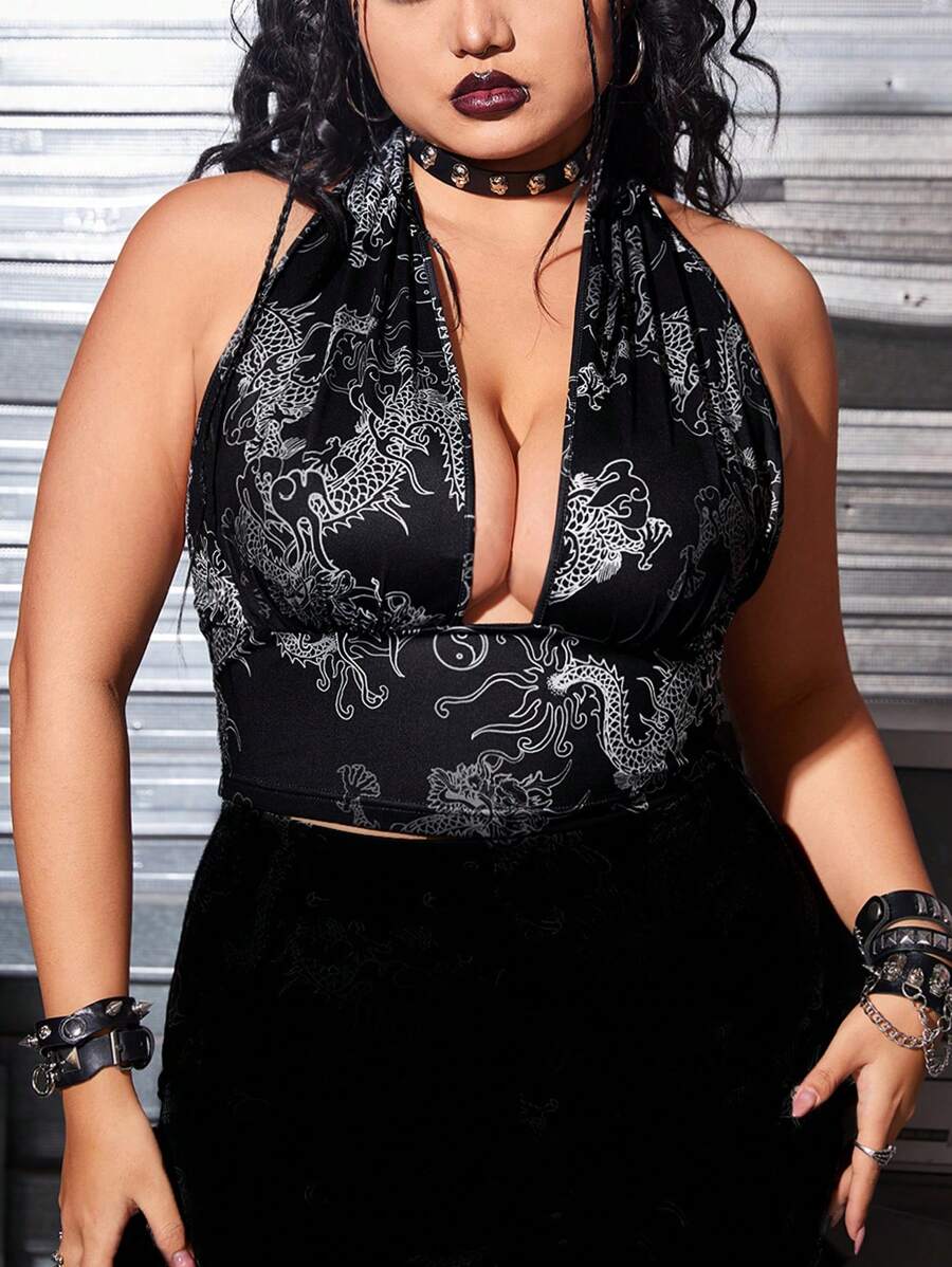 Women's Plus Size Chinese Dragon Printed Hollow Out Tank Top