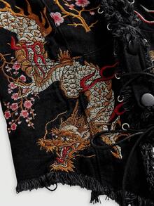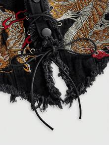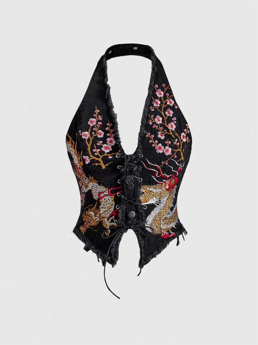 Women's Retro Motorcycle J-Fashion New Chinese Style Embroidered Halter Sexy Denim Top