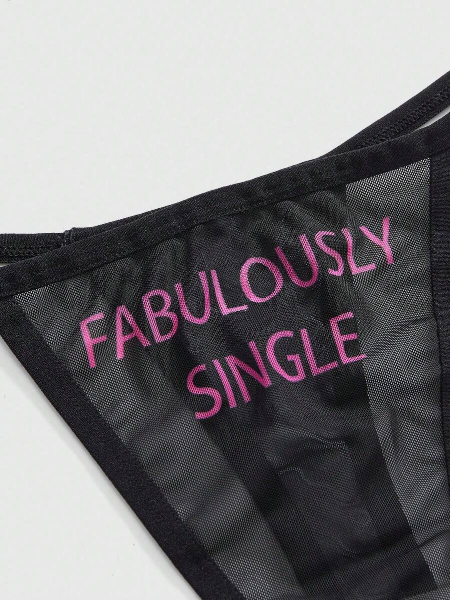 Women's Sheer Mesh Letter Print Sexy Thong Panties