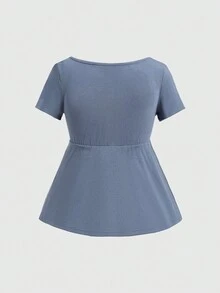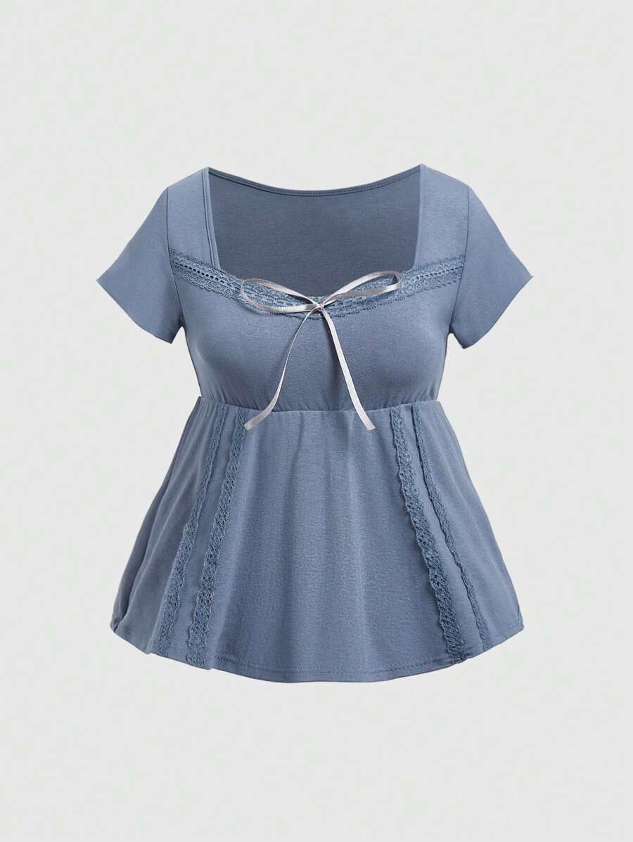 Women's Short Sleeve Basic Peter Pan Collar Lace Patchwork T-Shirt