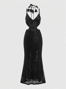 Women's Sleeveless Hollow Out Glitter Detail Bodycon Dress For New Year's