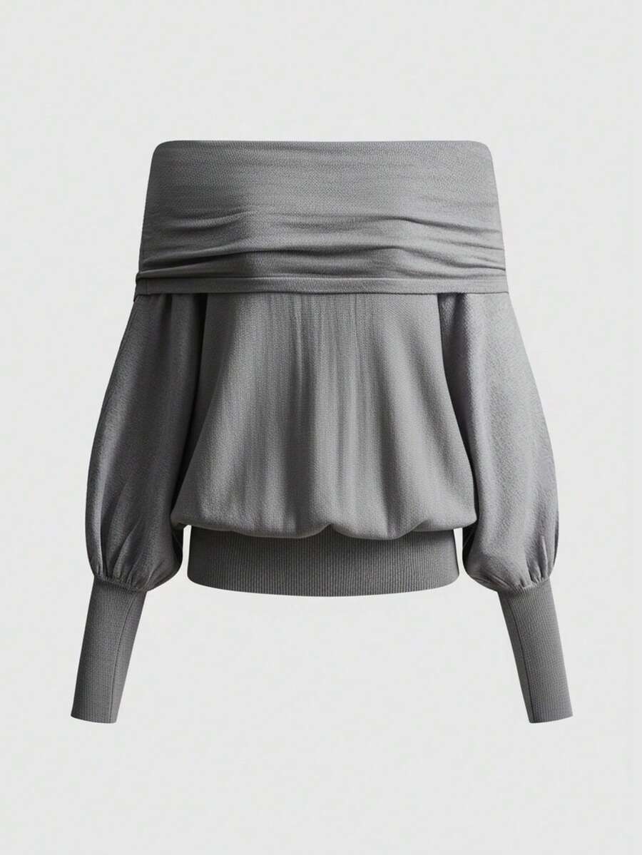 Women's Solid Color Loose Casual Versatile Long Sleeve Y2K Off-Shoulder Sweater