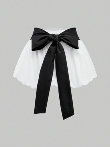 Women's Super Short Color Block Bow Tie Elastic Waist Ruffled Skirt, School